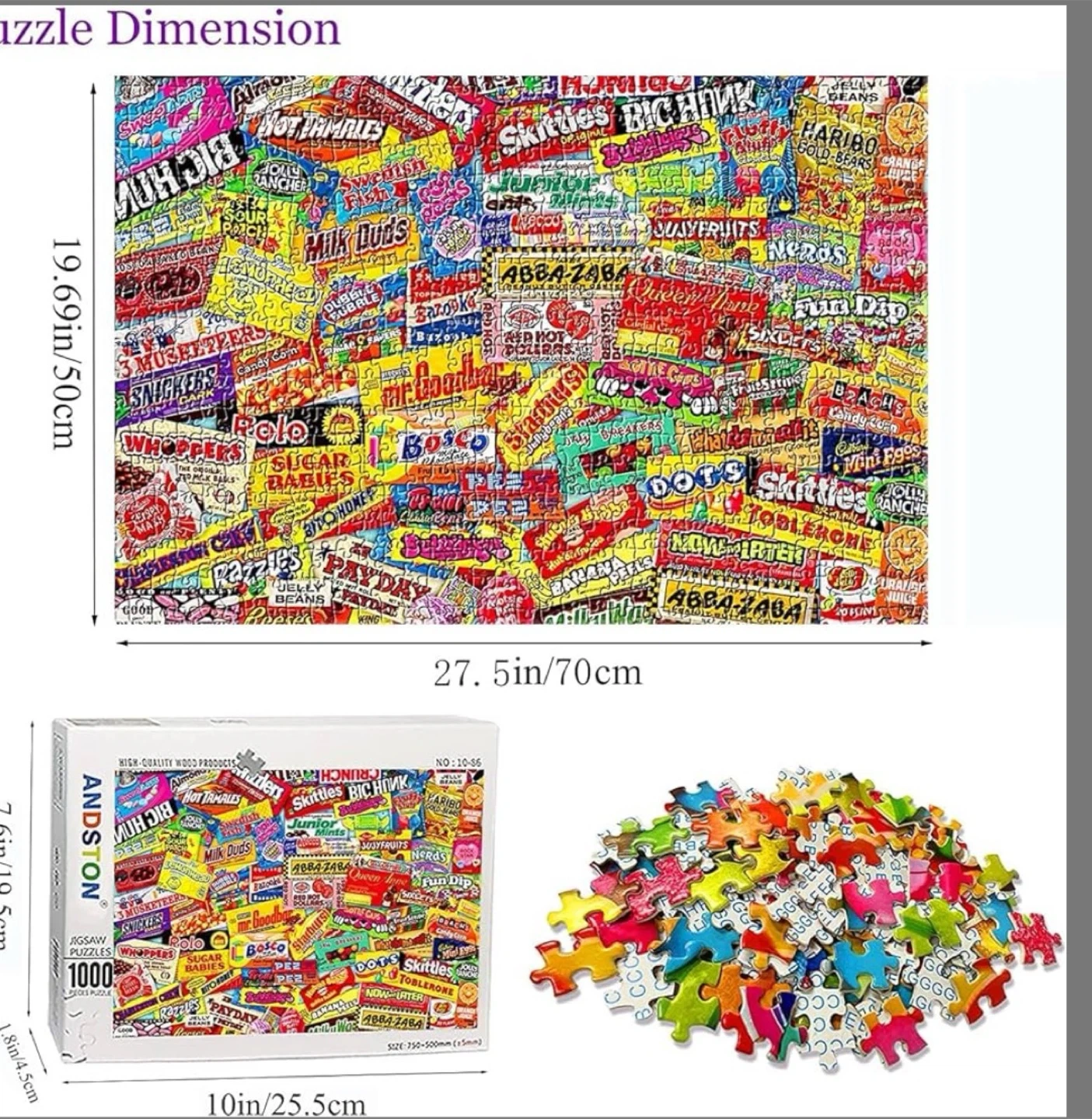 14Selling a YinSheng 1000-piece jigsaw puzzle with a fun candy theme! The completed puzzle measures 700 x 500mm (approximately 27.5 x 19.69 inches). It's a high-quality puzzle made with good materials. Perfect for a relaxing activity!
