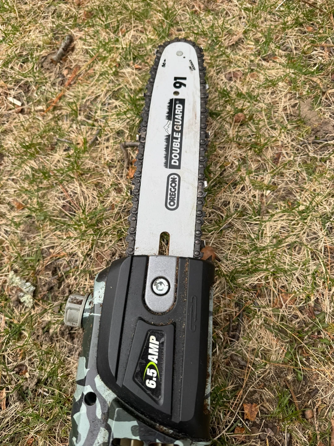 This Earthwise extendable pole saw has a 6.5 amp motor. The cutting head is adjustable for different angles.