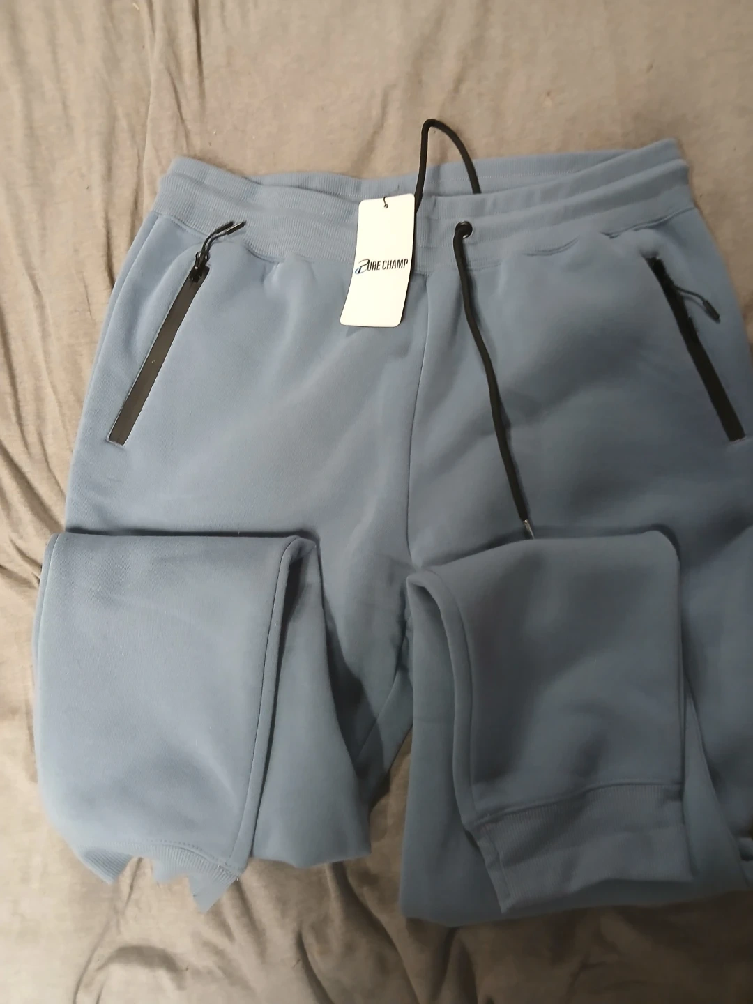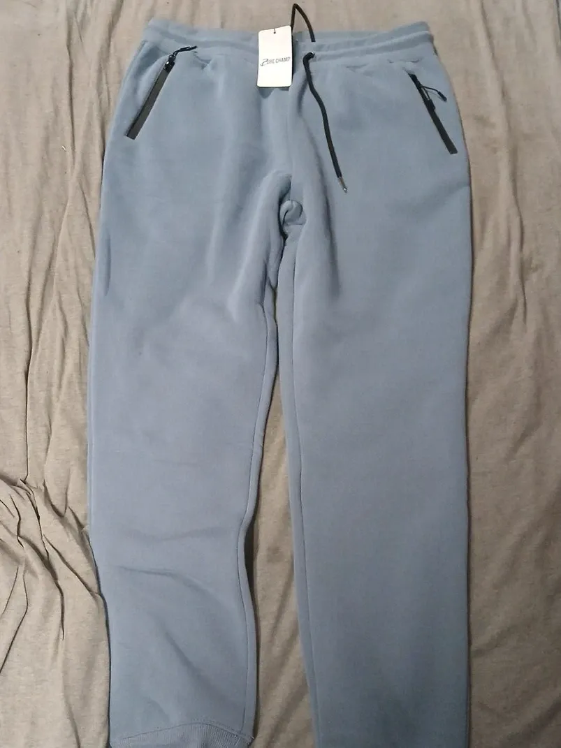 These Pure Champ joggers are brand new with tags! They're a size XL and a nice light blue color. They have a drawstring and pockets with zippers. The style number is MFJ-700. Originally bought for $59.99