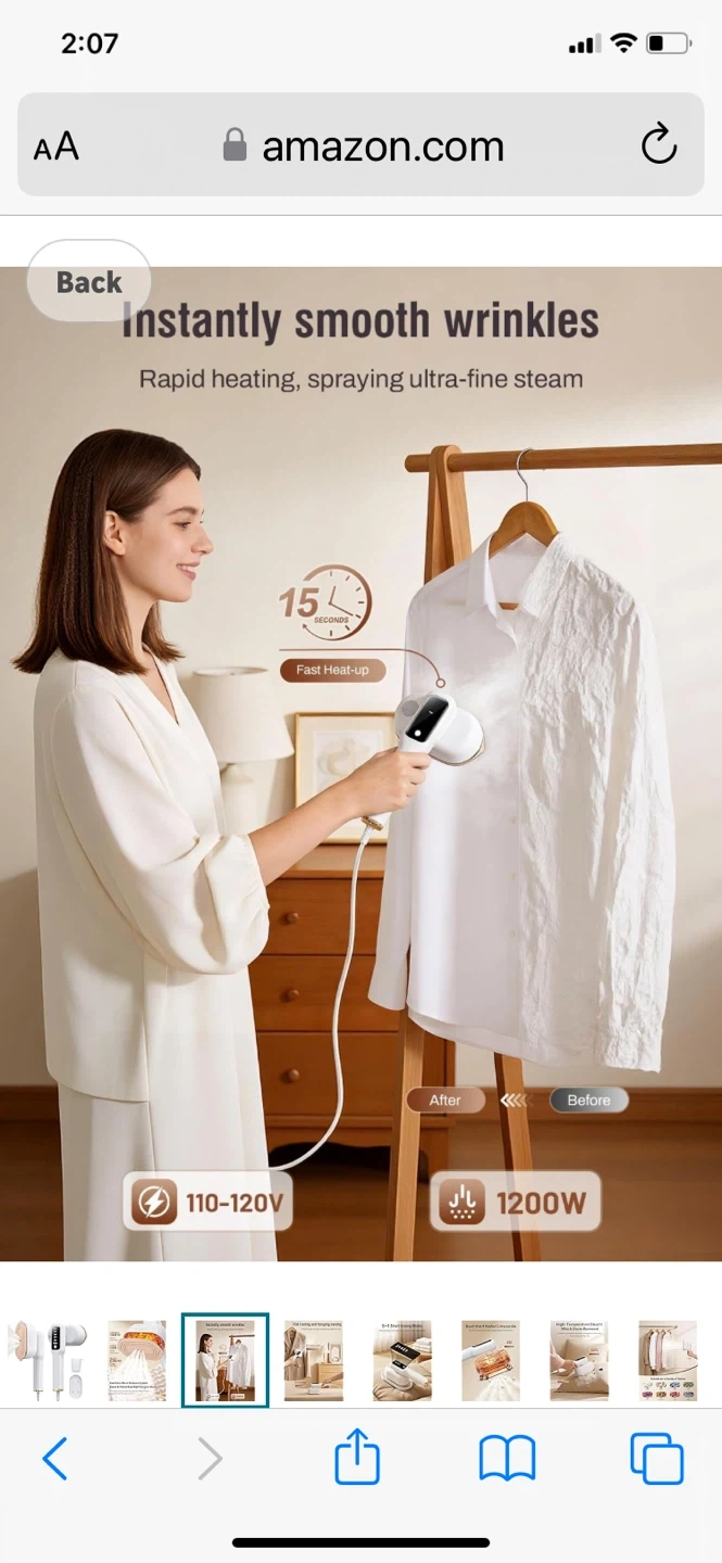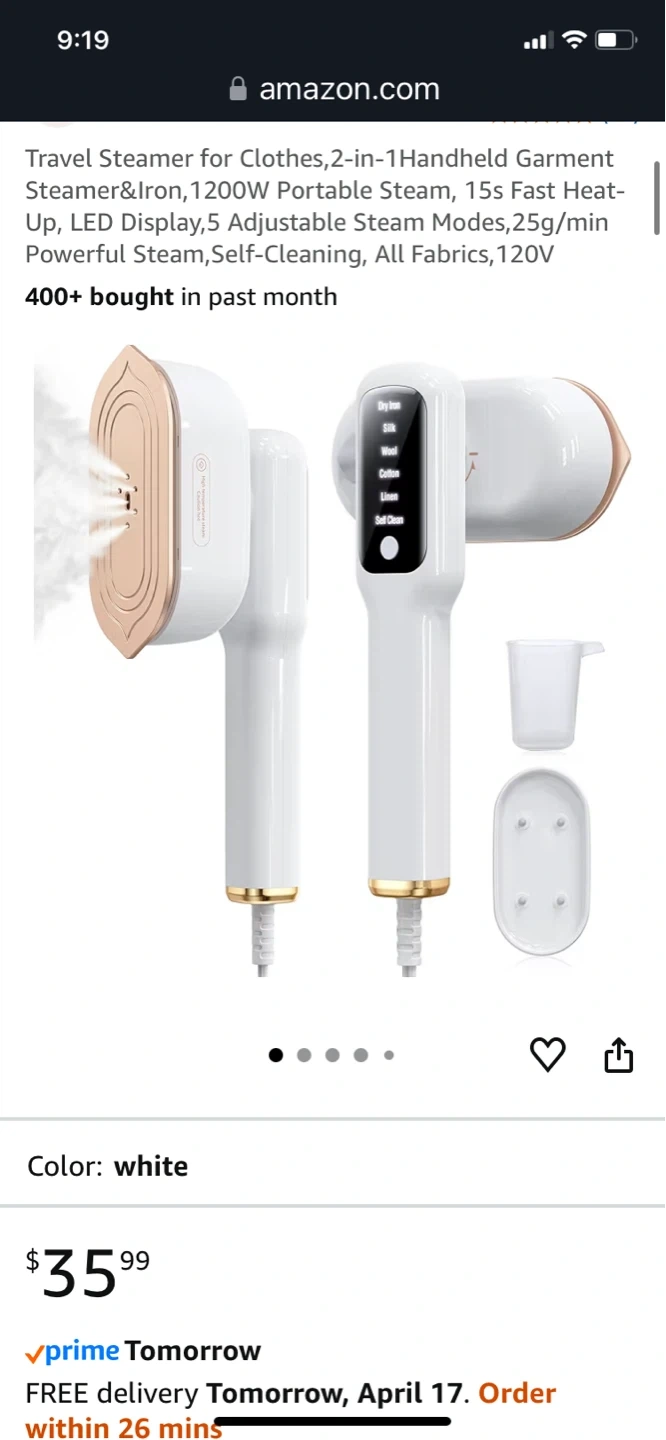 Instantly smooth wrinkles with this powerful 1200W clothes steamer. It features a dual-core micro-pressure system for dense and potent dual high-pressure steam, offering 25G/min steam output. It has 5+1 smart ironing modes for personalized garment care. Includes measuring cup and ironing board accessory.