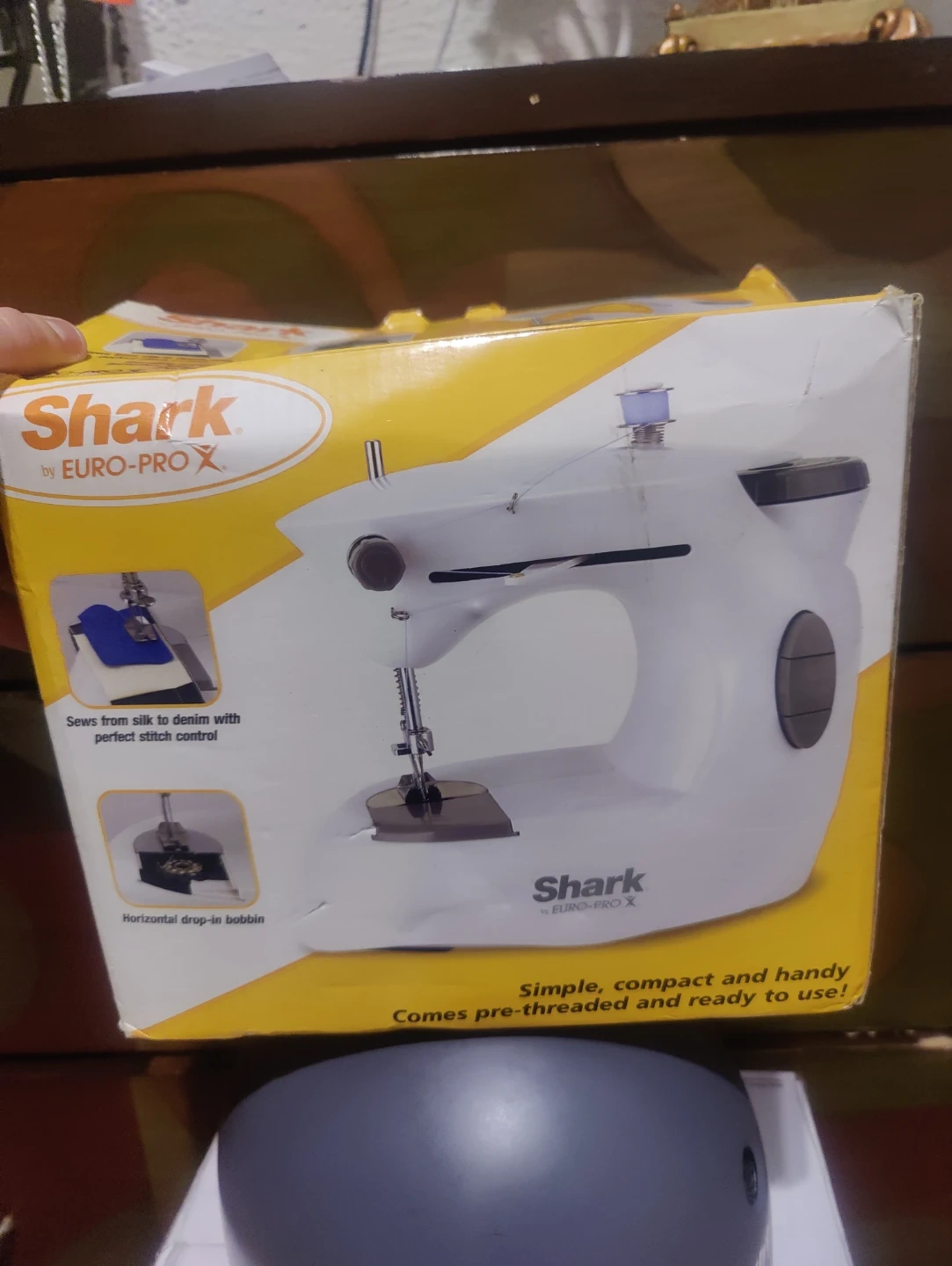 This Shark electric sewing machine by EURO-PRO is simple, compact, and handy. It comes pre-threaded and ready to use! Sews from silk to denim with perfect stitch control. Features a horizontal drop-in bobbin.
