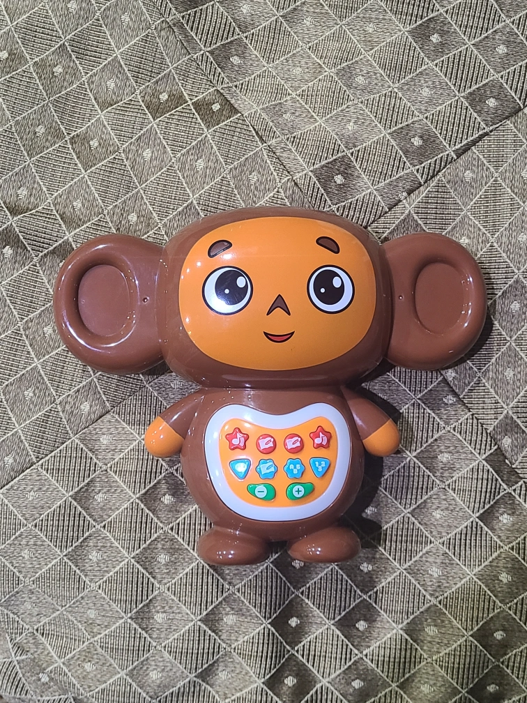 Selling a cute Cheburashka toy! It has buttons on its tummy that light up and play sounds. It's in great condition and ready for a new home.