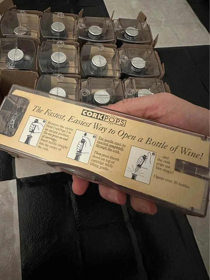 Selling a lot of 12 Cork Pops Instant Wine Bottle Openers in black. All are brand new and factory sealed in original packaging.