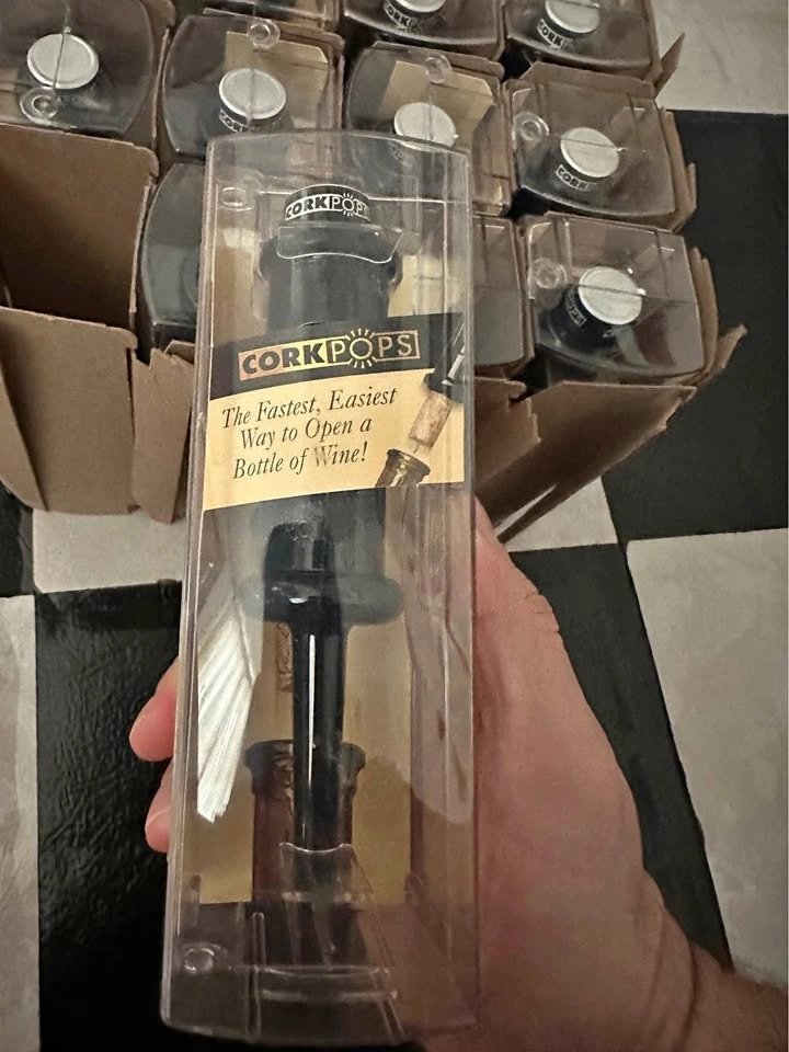 Selling a lot of 12 Cork Pops Instant Wine Bottle Openers in black. All are brand new and factory sealed in original packaging.