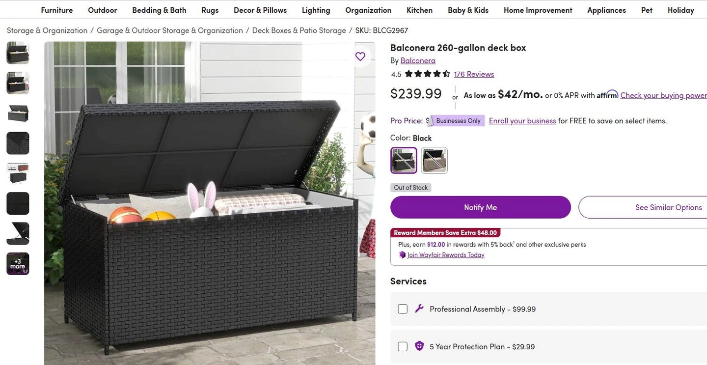 Waterproof Storage Chest - Balconera 260-gallon deck box
