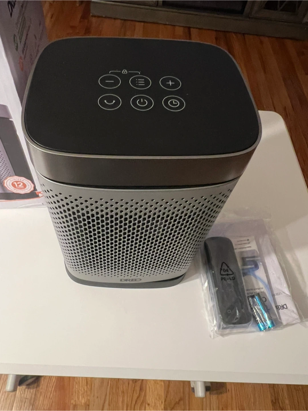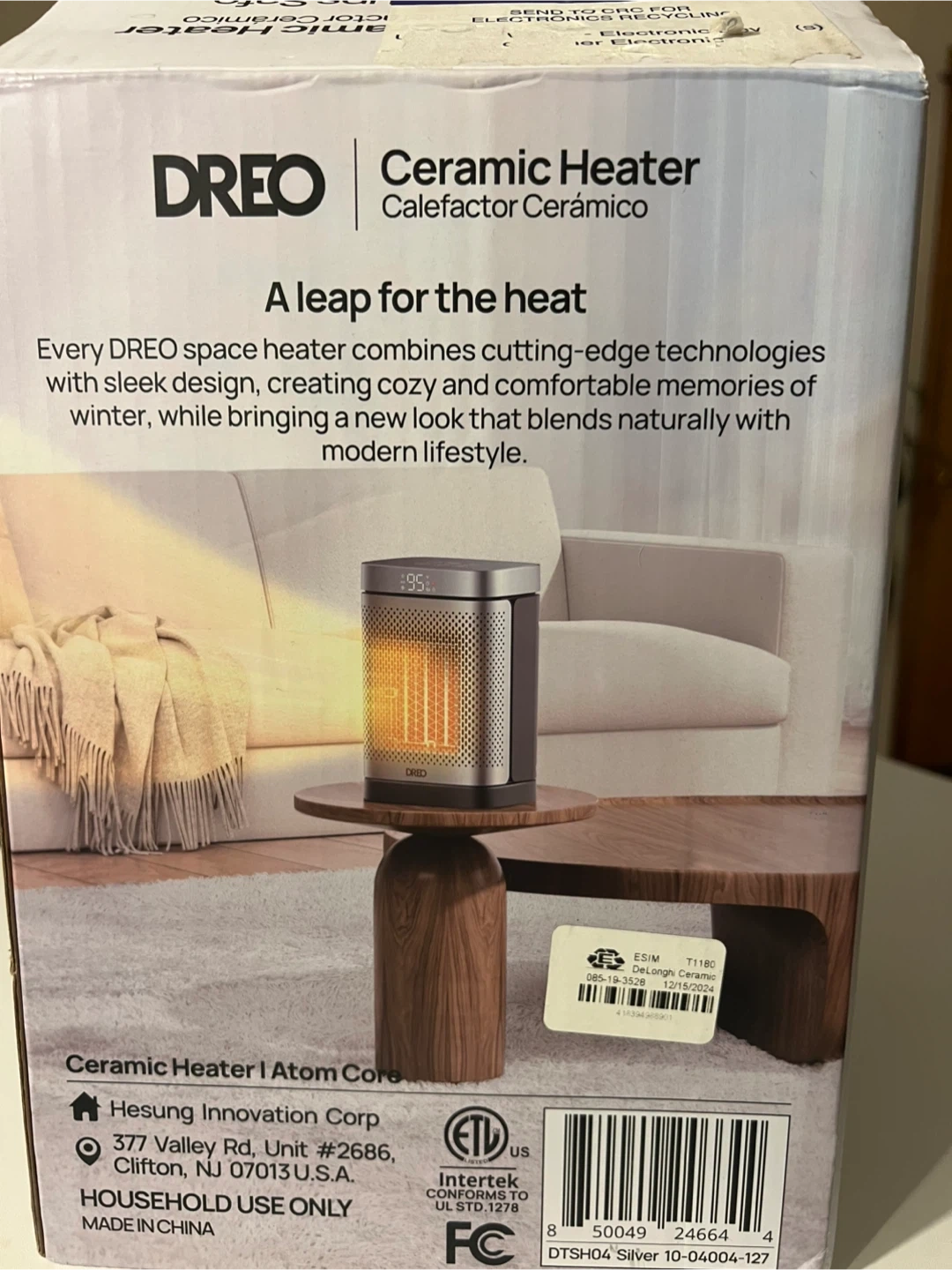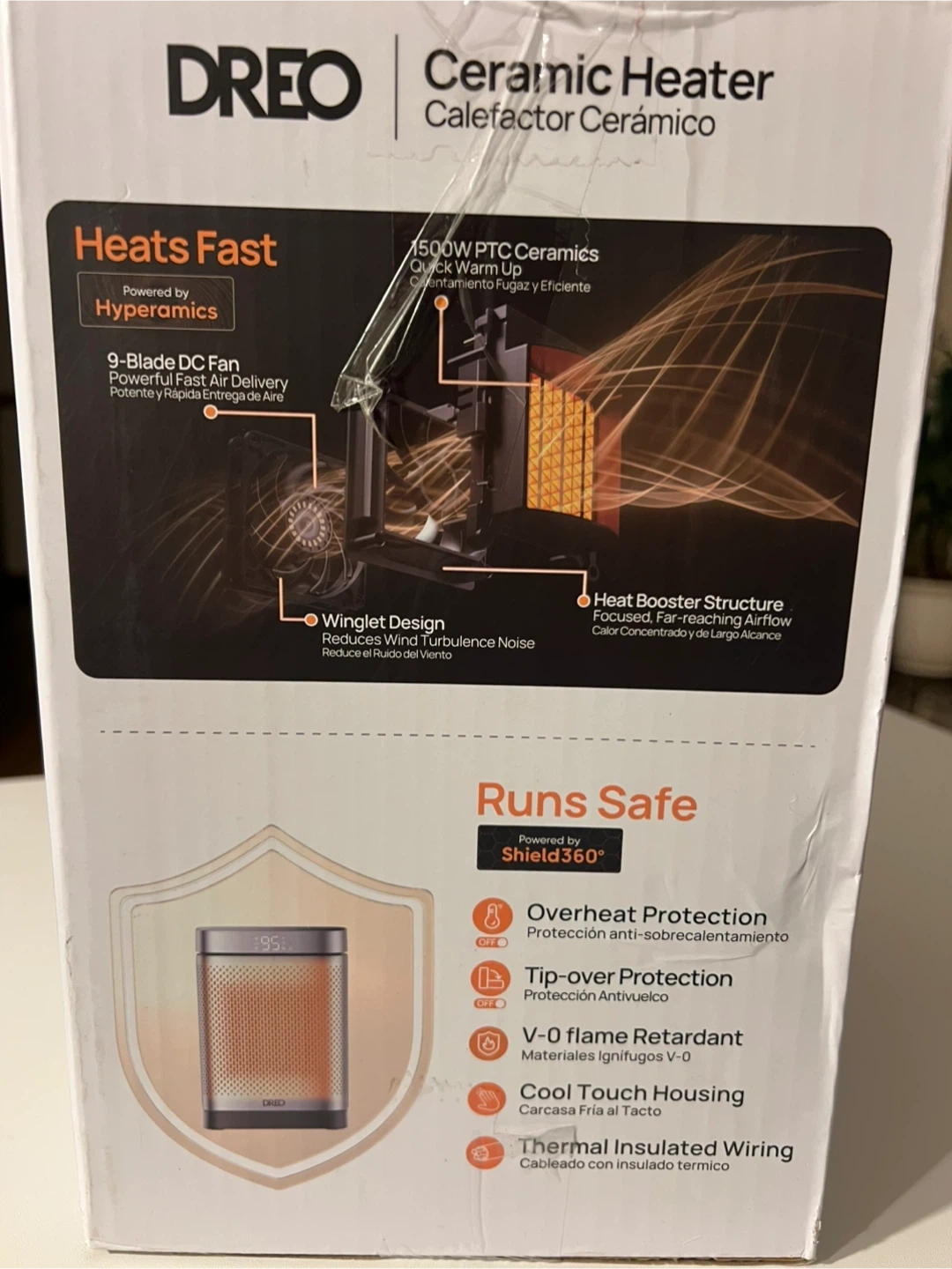 This Dreo ceramic heater offers all-around heat power for small rooms. It features 5 comfort settings, including heat and eco modes, and a digital thermostat. Includes remote and batteries. 12-month limited warranty.