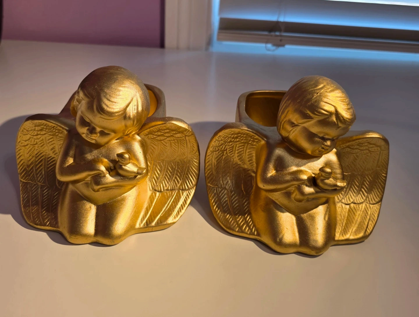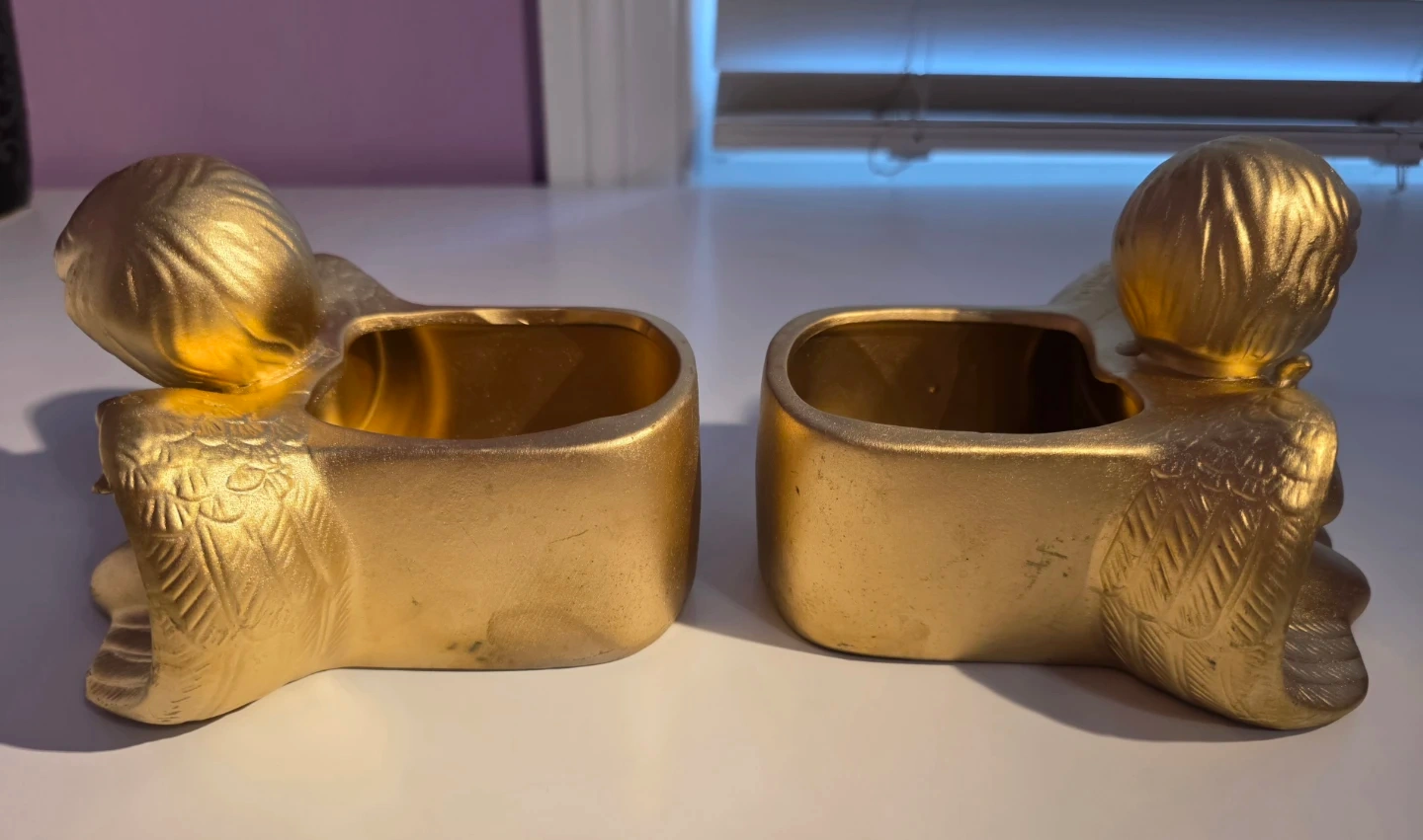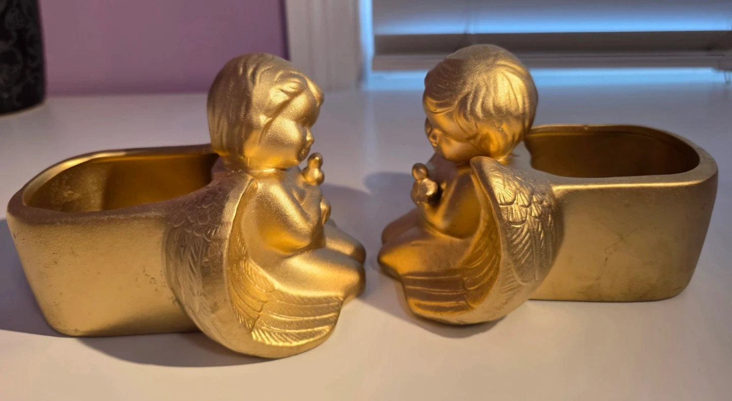 Selling a set of 2 adorable gold angel ceramic planters ! They're in great condition and would a touch of whimsy to any room