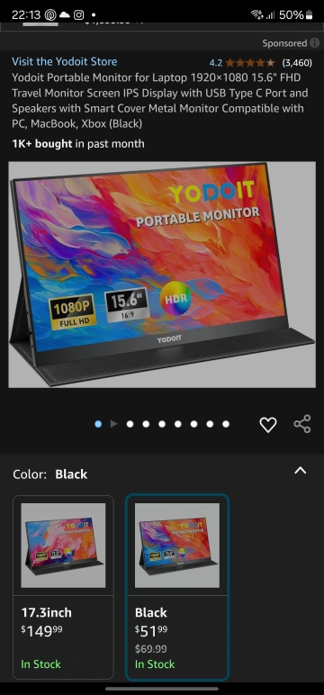 7715.6 inch portable monitor. Full HD 1920x1080. IPS display. USB Type-C port. Includes speakers. Smart cover. Compatible with PC, Macbook, Xbox.