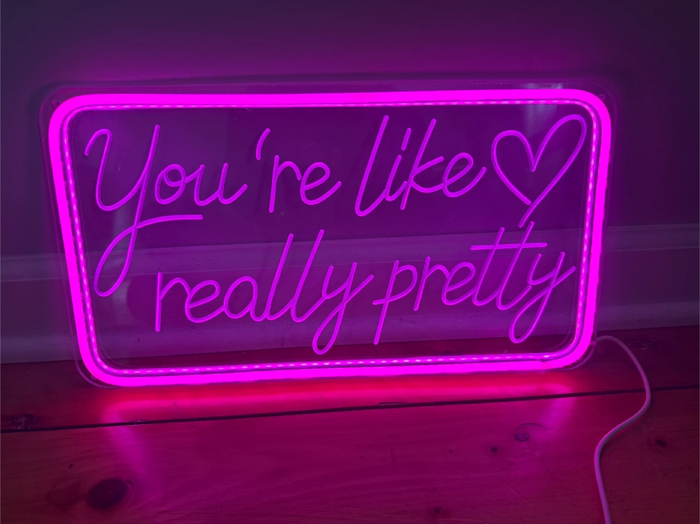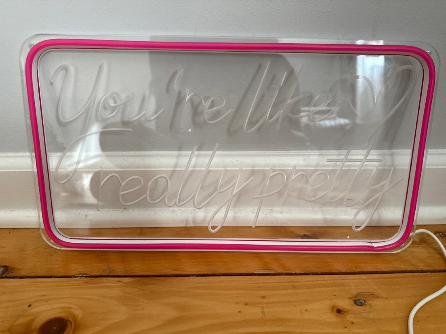 I'm selling a neon sign that says "You're Like Really Pretty" in a fun, cursive font. It's a great piece to add some light and personality to any room! (Box not included)