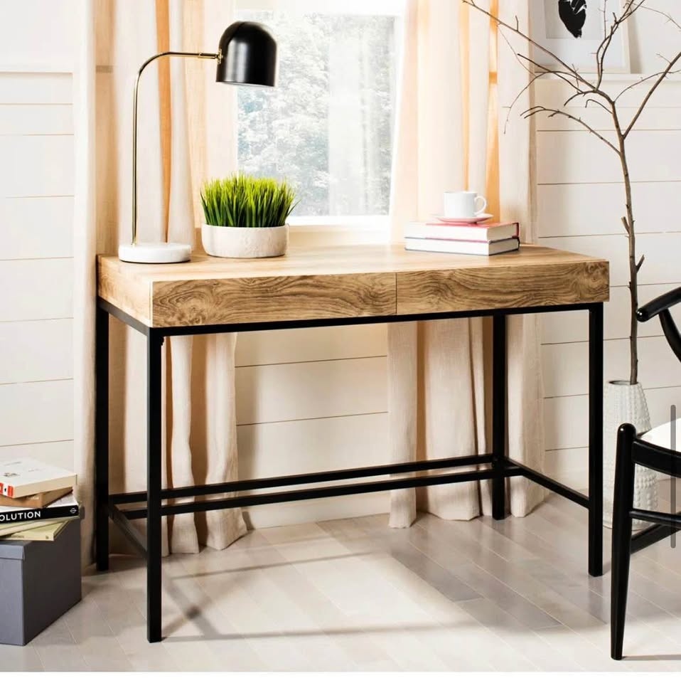 Wooden Desk with Black Metal Frame
