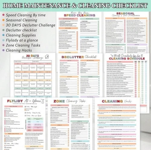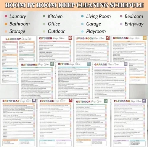 • Room-by-room deep clean sheets (kitchen, bedroom, bathroom, office, garage & more)
