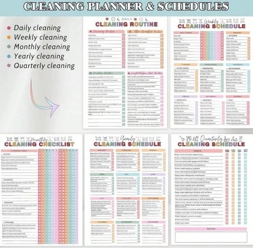 Cleaning Planner Set – Daily Weekly Monthly Schedules, Checklist