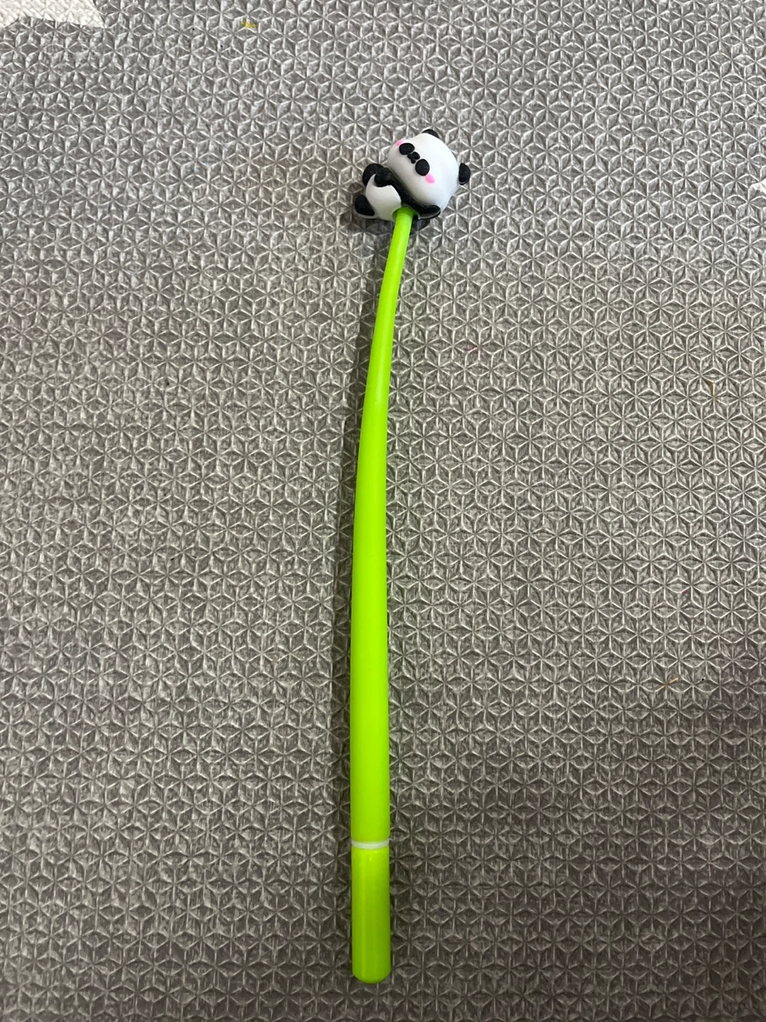 Cute panda pen with a bright green barrel. It writes smoothly. Great for journaling or adding a fun touch to your notes!