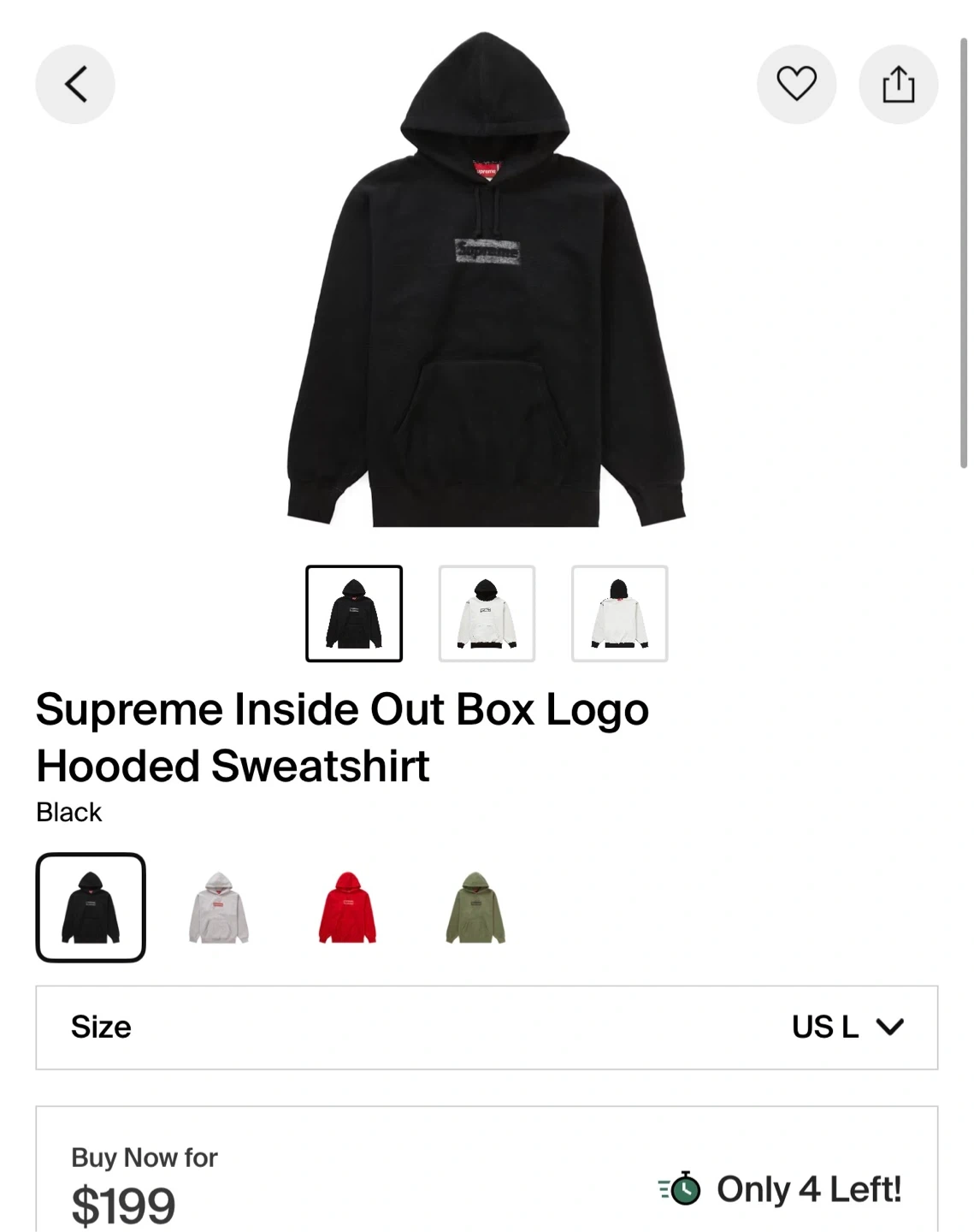 Supreme Inside Out Box Logo Hooded Black Size Large
