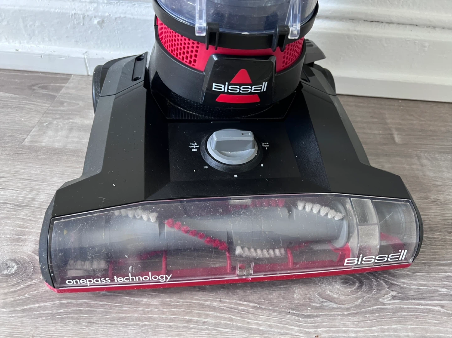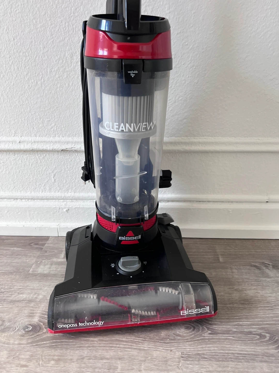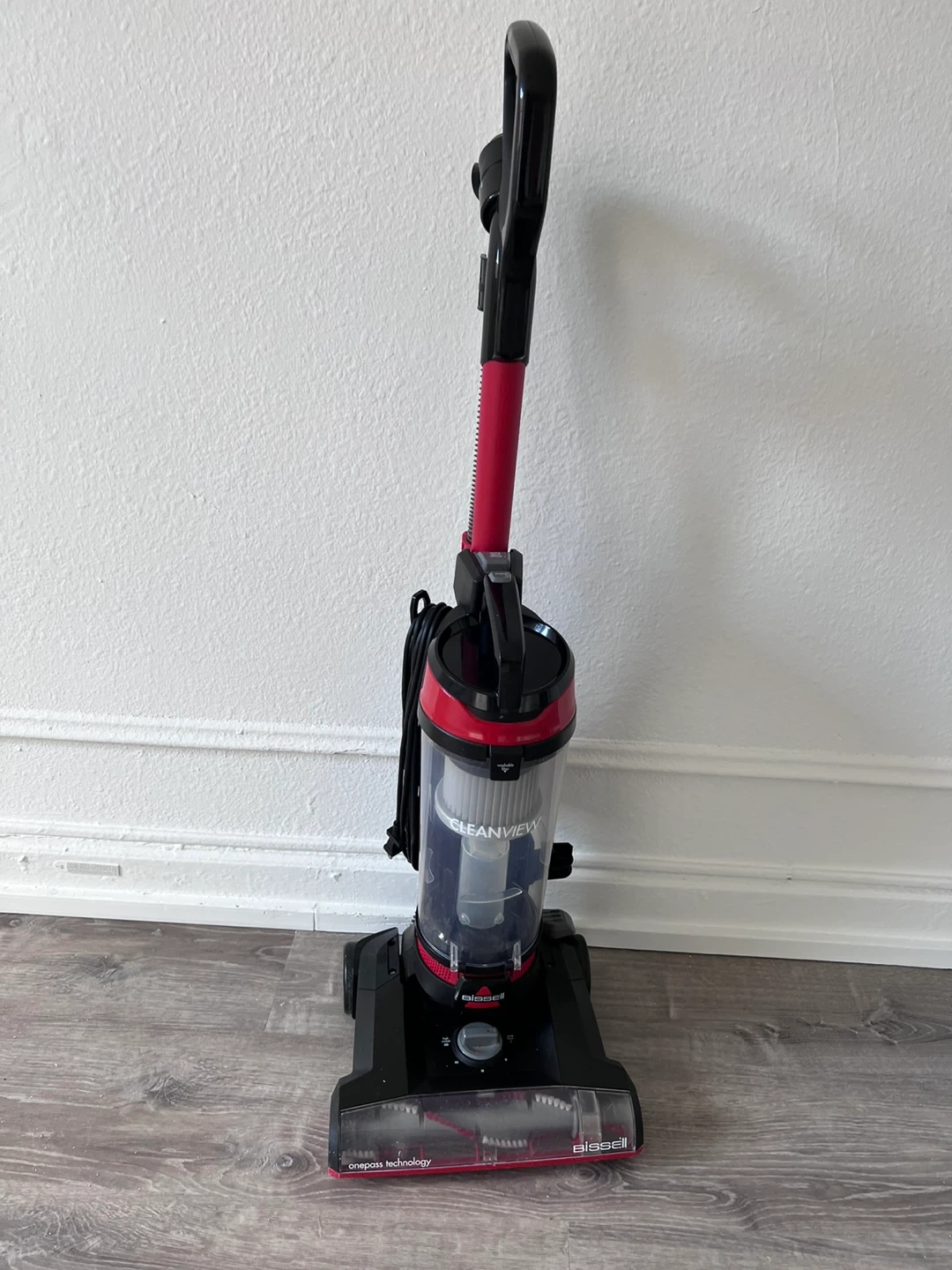 This is a Bissell CleanView upright vacuum cleaner. It features one pass technology for efficient cleaning. The dust bin is washable. It's a great vacuum for everyday messes!