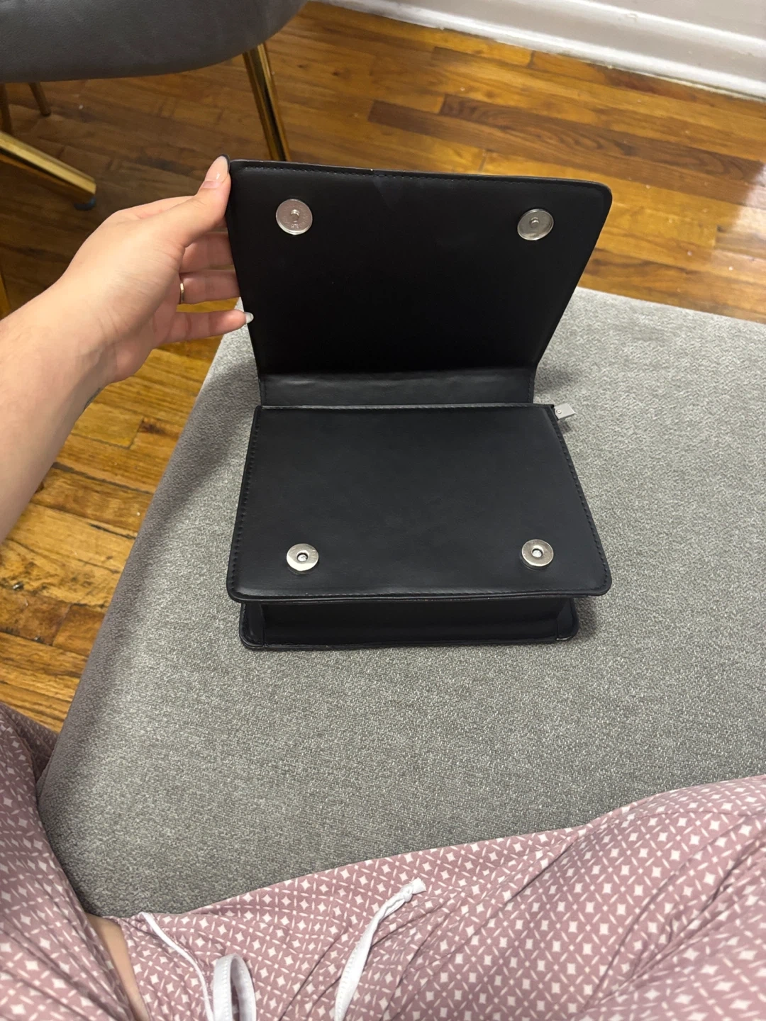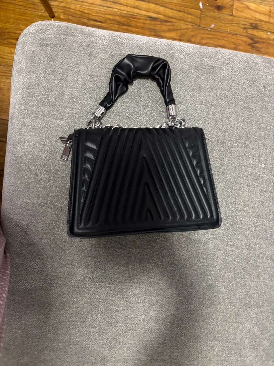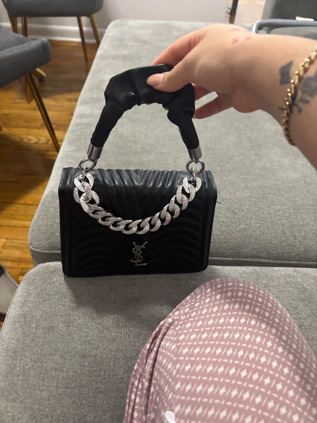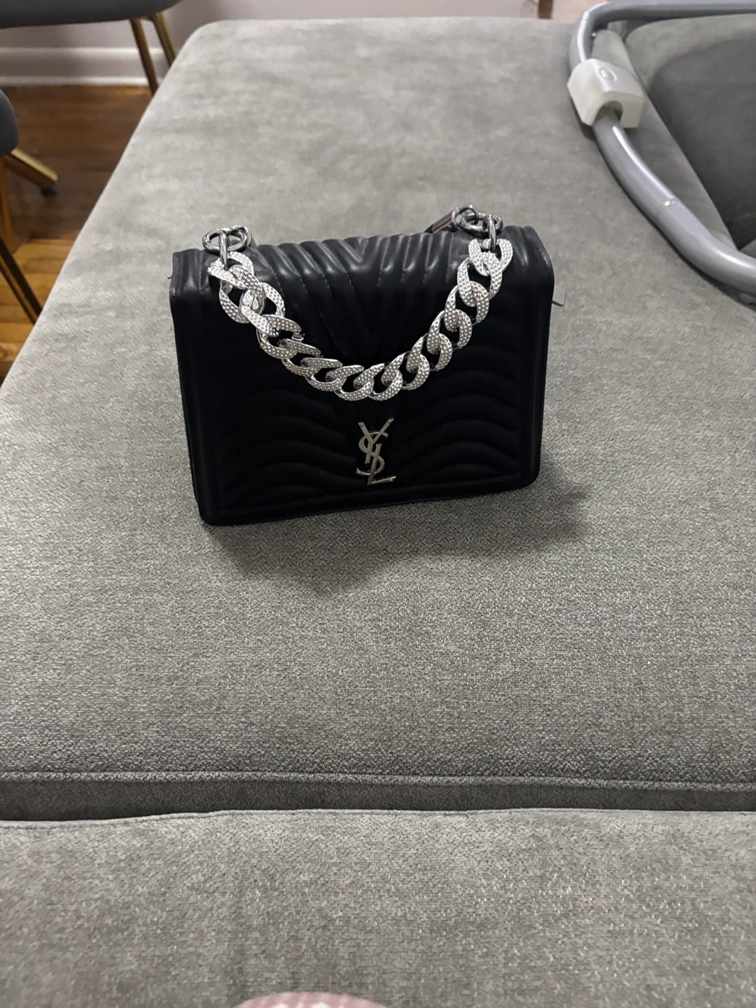 10This is a stylish black top handle bag from YSL. It features a unique design with a chain and a top handle. It's in great condition and ready for a new owner!