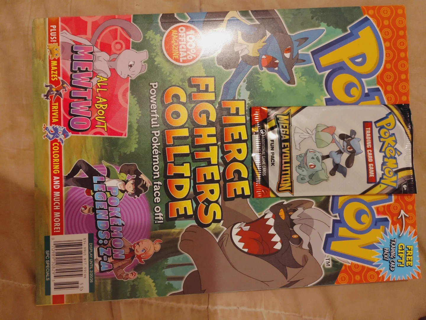 This Pokemon magazine features Mewtwo and Pokemon Legends: Z-A. It includes a fun pack trading card with the Mecha Evolution theme. It's a great item for any Pokemon fan!