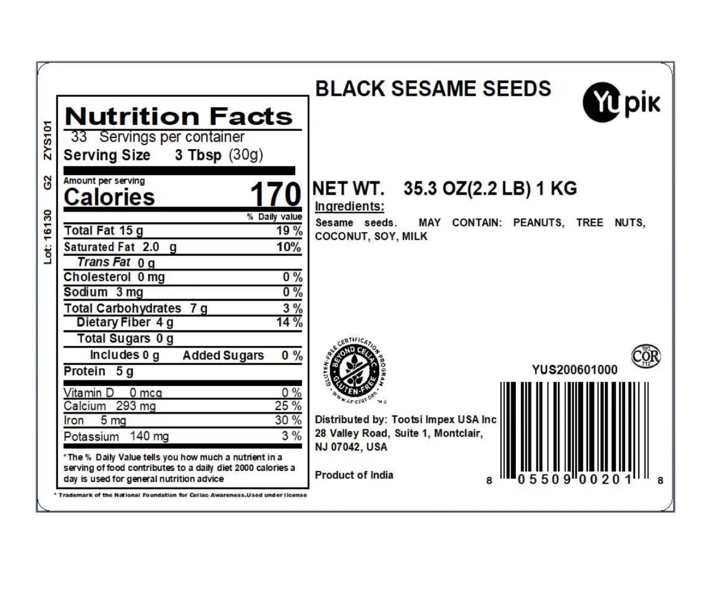 65Selling a bag of Yupik Black Sesame Seeds! It contains 35.3 oz (2.2 lb) or 1 kg of sesame seeds. Perfect for adding a nutty flavor to your dishes
