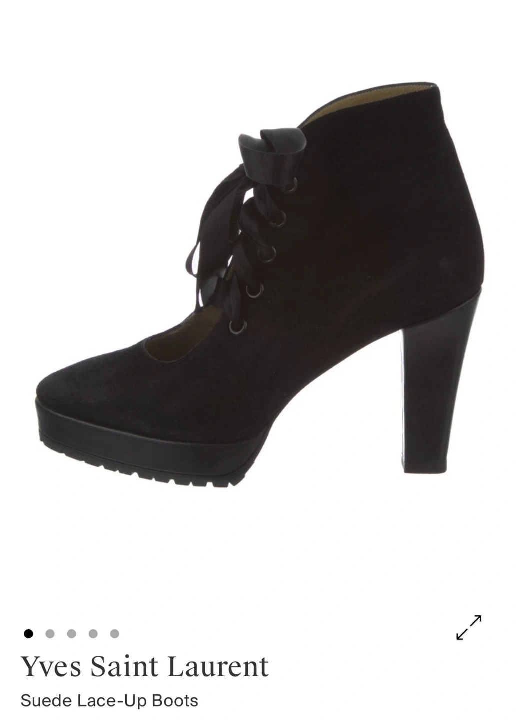 Here are some stylish Yves Saint Laurent suede lace-up boots! They feature a sleek black design and are made from high-quality suede. Perfect for adding a touch of elegance to any outfit