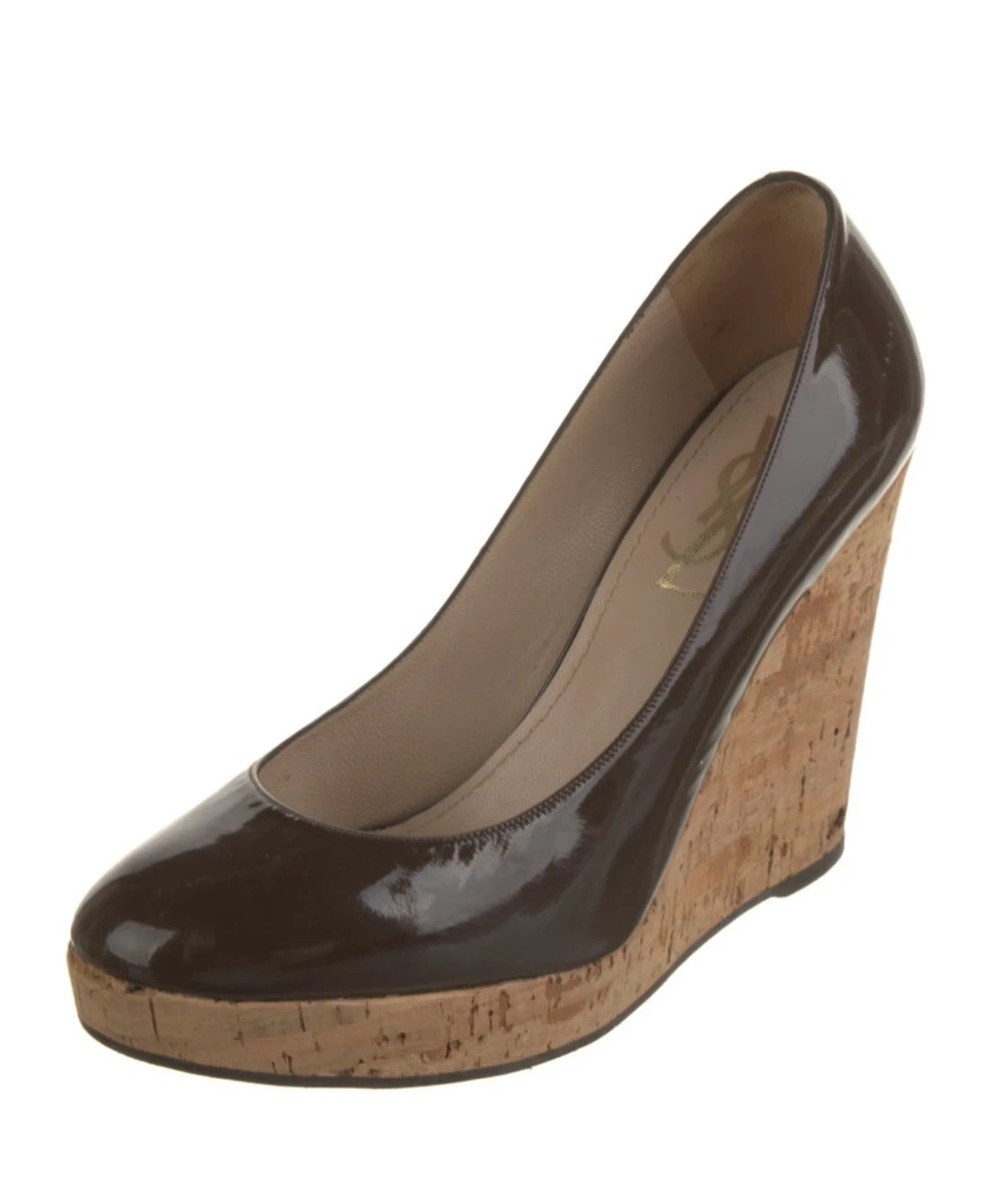 Yves Saint Laurent Brown Patent Leather Wedge Heels