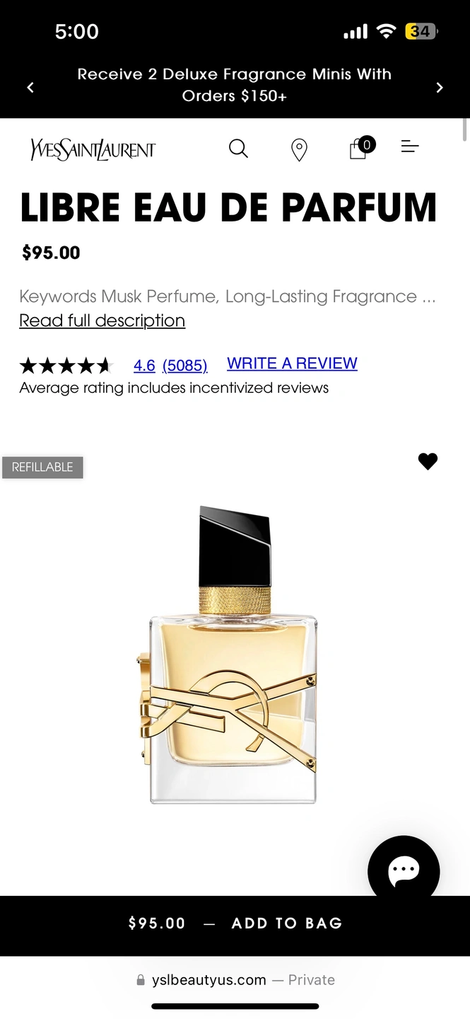 34A bottle of Yves Saint Laurent Libre Eau de Parfum. Origianlly $95. Only a couple of times used. Almost a new.