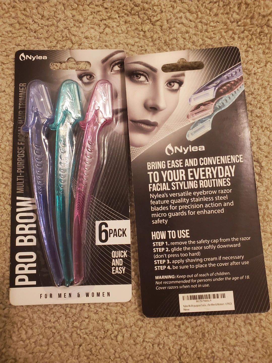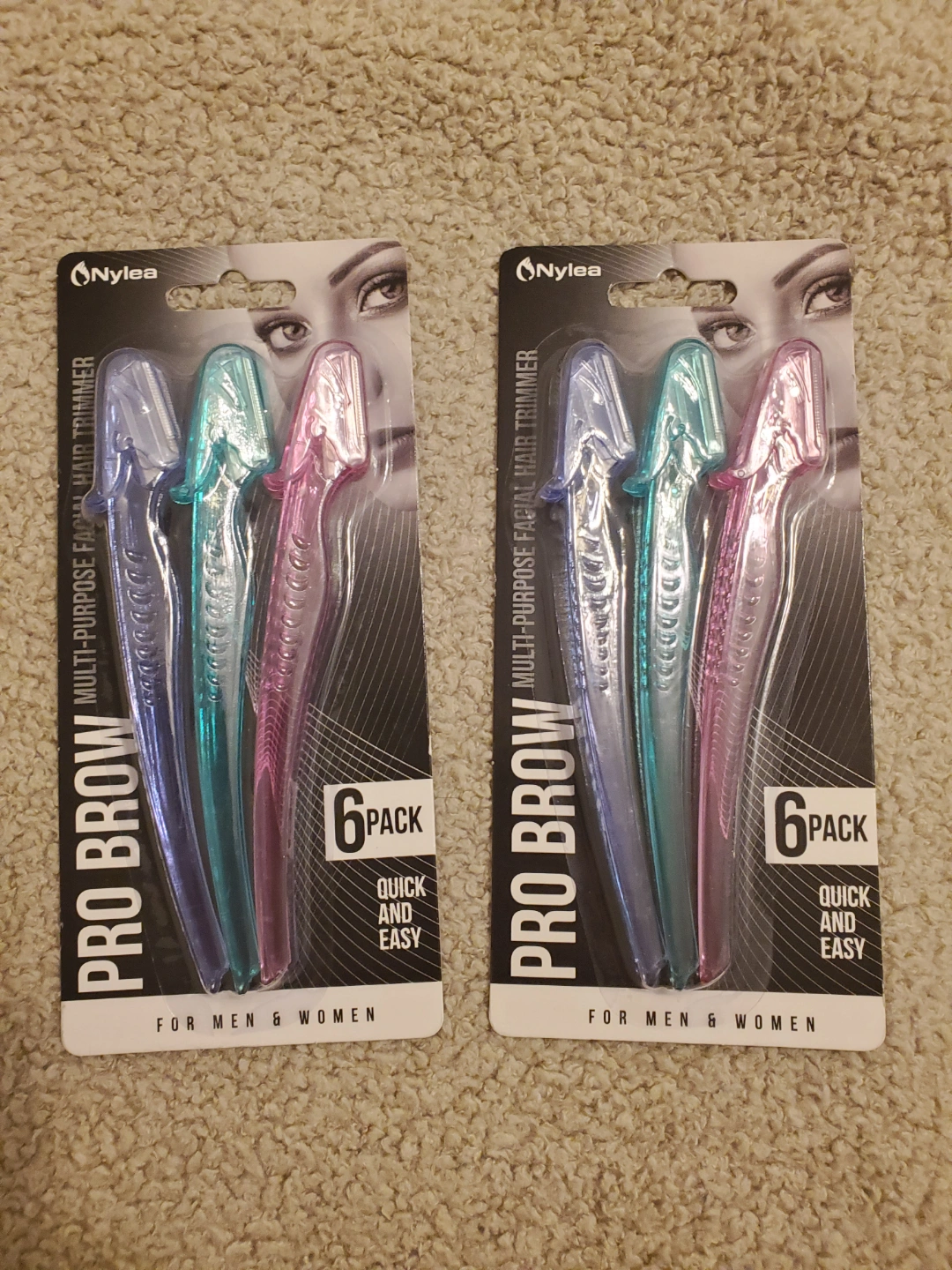 Two packs of Nylea Pro Brow eyebrow razors. Six razors per pack. Multi-purpose, for men and women. Quick and easy to use. Features quality stainless steel blades and micro guards for precision and safety.