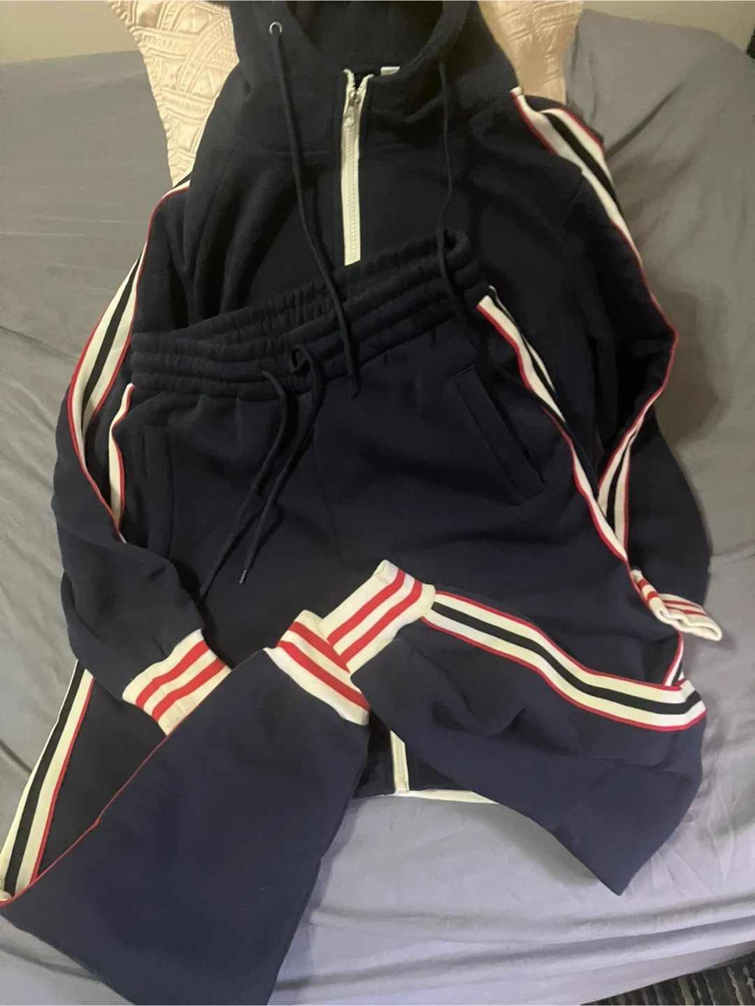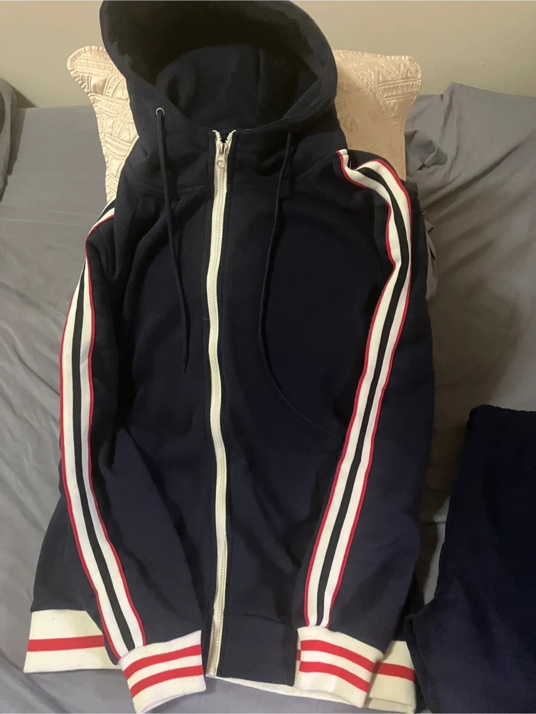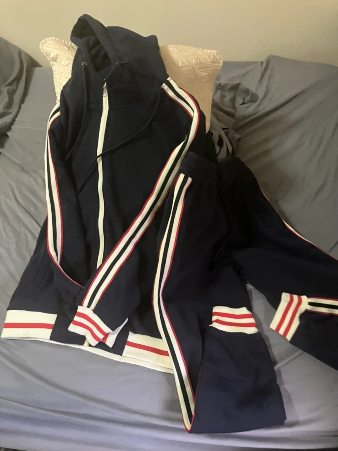 Great condition, great quality. Size S (could fit size M as well). Paid $120 for it, great price. Hoodie & Pants included!