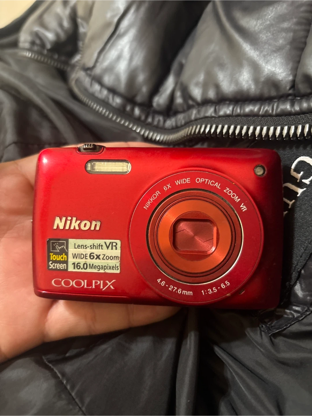 Selling a Nikon Coolpix digital camera. It's a vibrant red and has a 16.0 megapixel screen. It features a NIKKOR 6X wide optical zoom VR lens. Perfect for capturing memories!