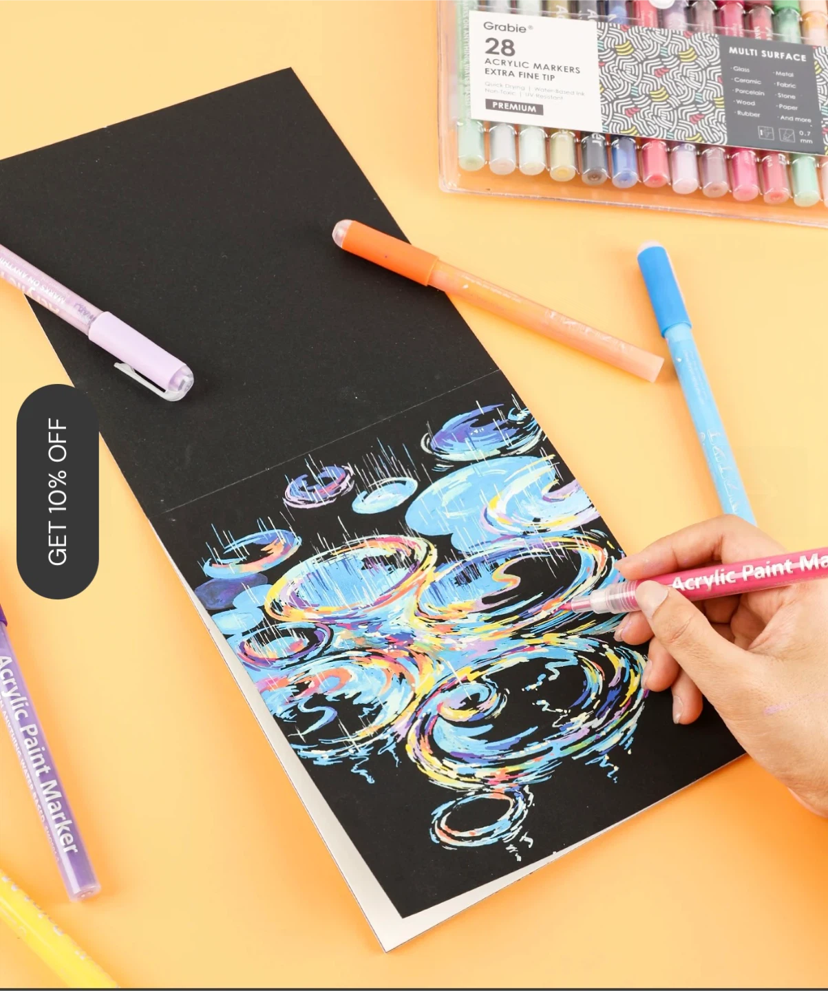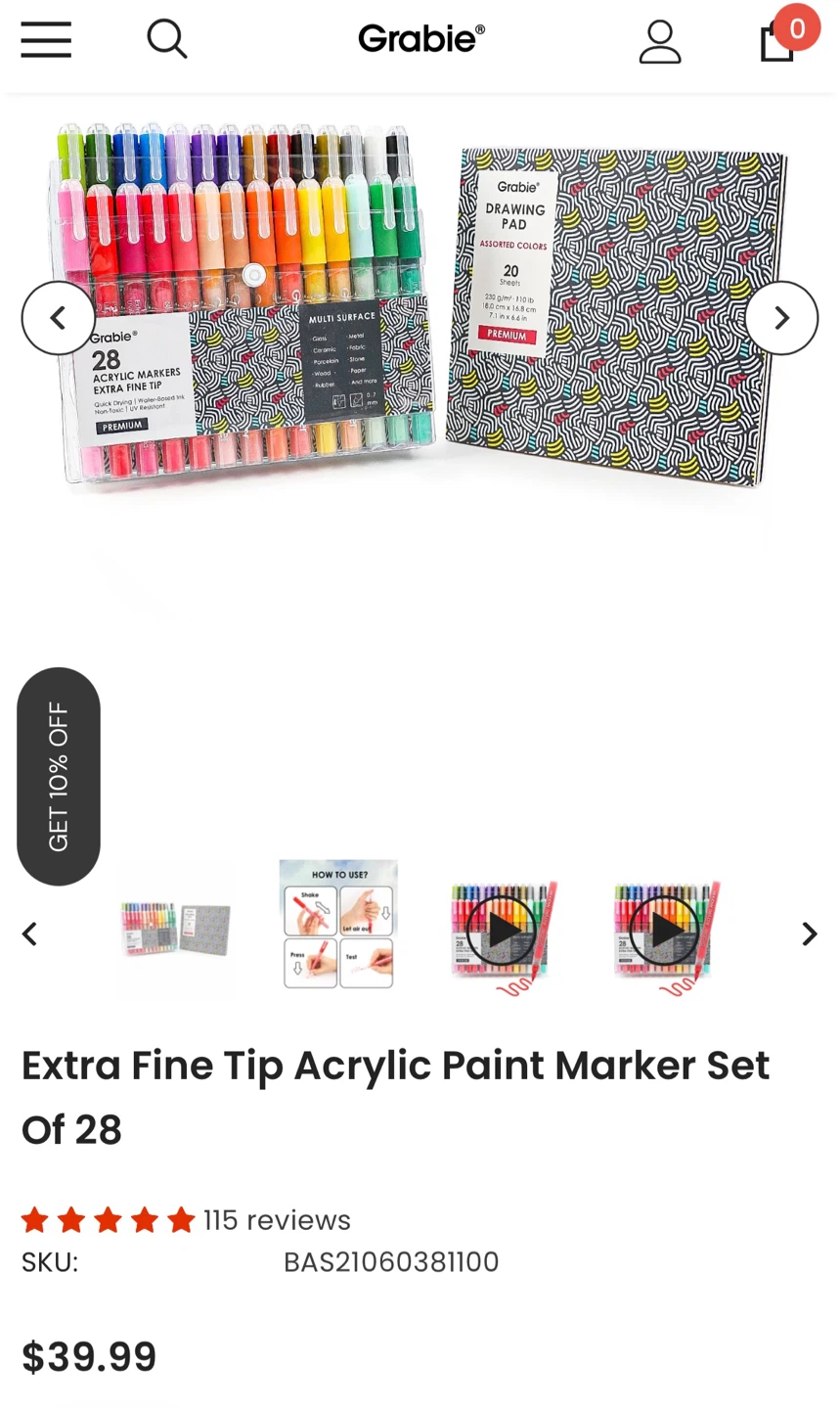 Grabbie 28 Premium Extra Fine Tip Acrylic Paint Marker Set🏆