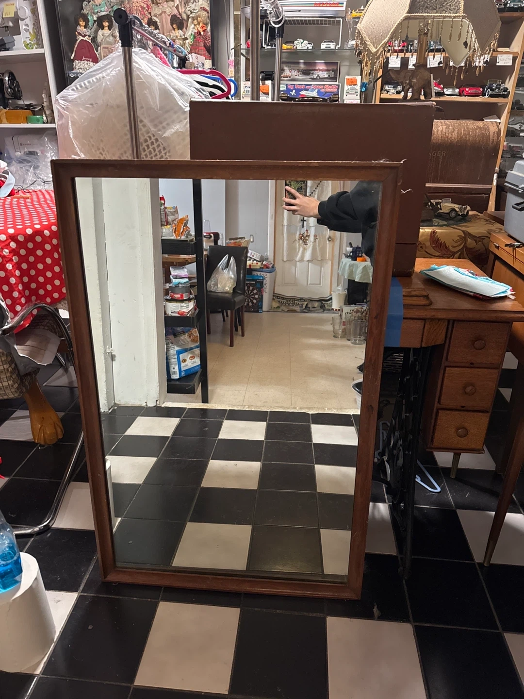 Selling a large mirror with a wooden frame. It's in good condition and ready to brighten up your space!