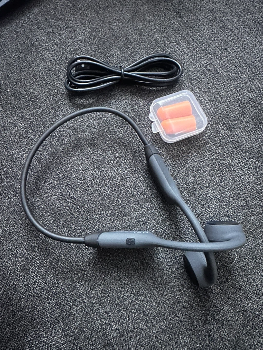 Selling a pair of bone conduction headphones. They come with a charging cable and earplugs. Great for listening to music or podcasts while staying aware of your surroundings
