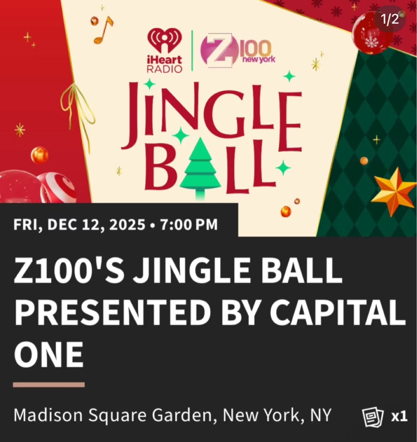 Selling one ticket to Z100's Jingle Ball presented by Capital One!