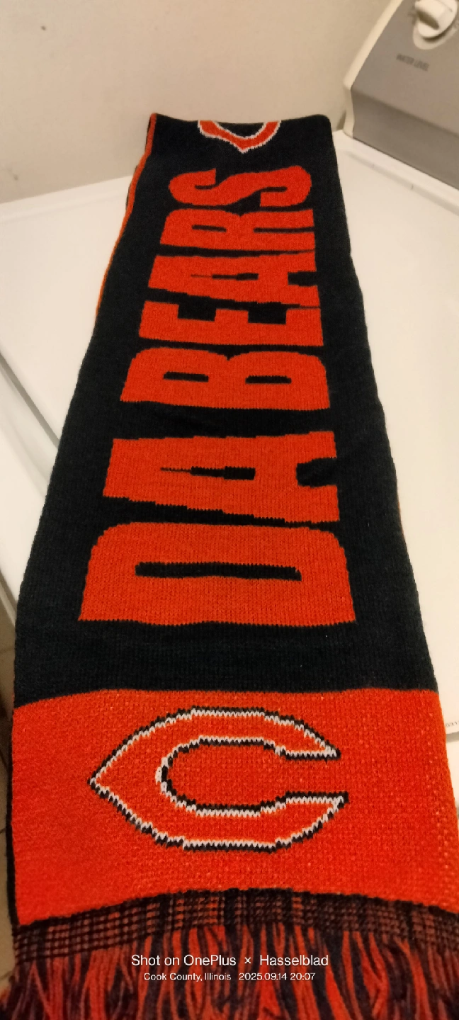 Show your team spirit with this Forever Collectibles Chicago Bears knit scarf! It features the team's logo and colors, perfect for staying warm at the game or around town.Perfect condition maybe used once when bought, it's 7" by 60"