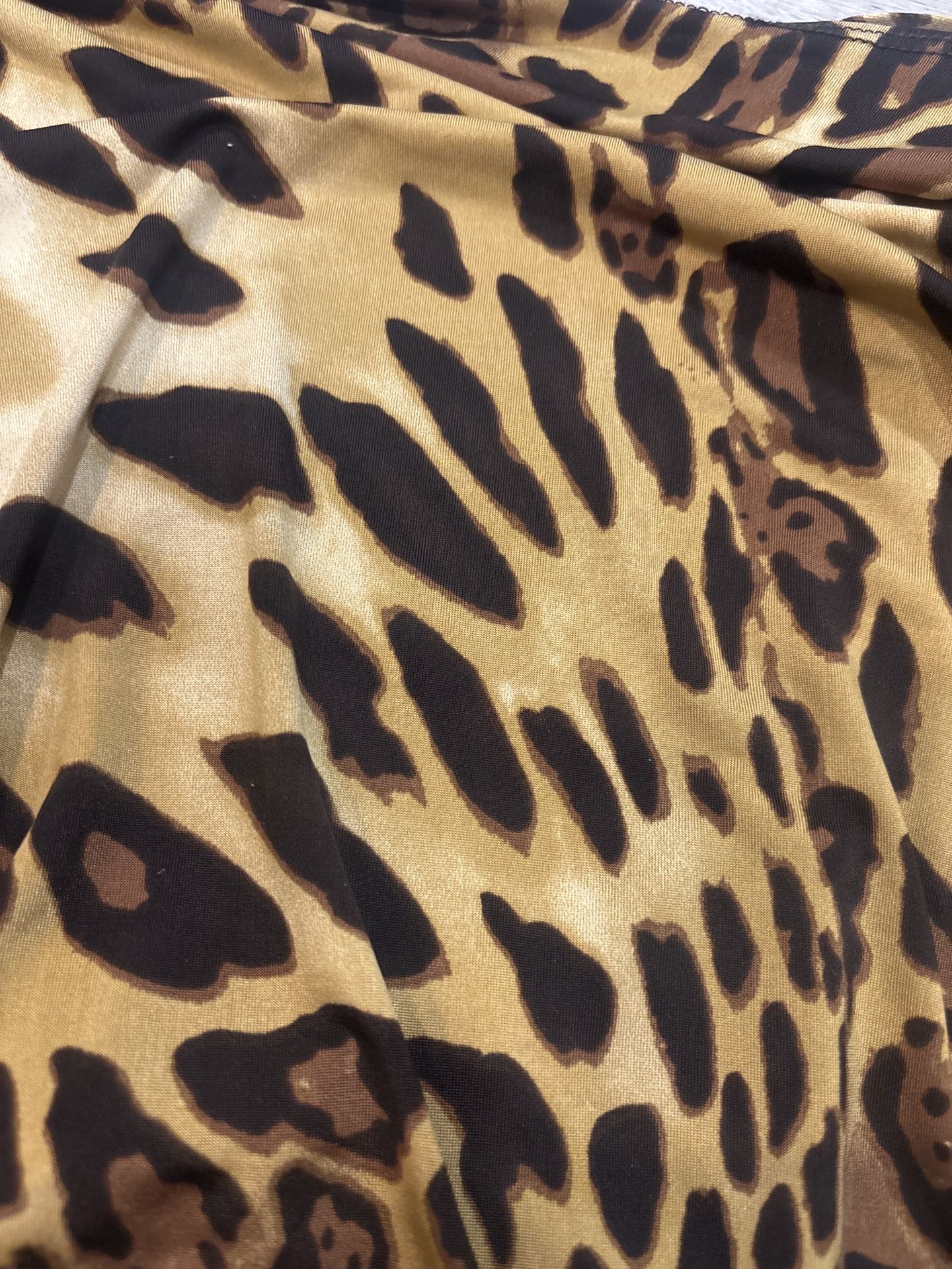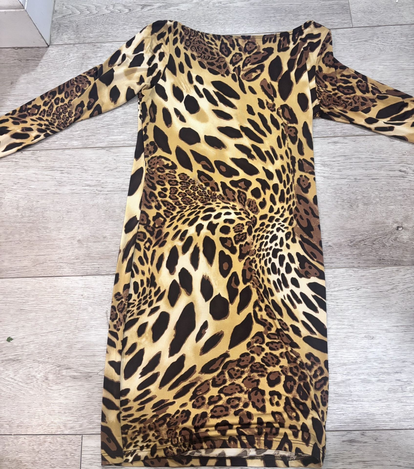 Turn heads in this bold Fashion Junkie dress featuring a striking animal-inspired print that blends leopard and zebra patterns. Crafted from a lightweight, silky-feel material, this dress drapes beautifully and offers a flattering fit. The highlight is the open back design, making it perfect for a night out or a statement look. Brand: Fashion Junkie. Style: Open back, long sleeve, bodycon silhouette. Print: Mixed leopard/zebra animal print in golden brown tones. Material: Thin, lightweight stretch fabric (comfortable & breathable). Condition: Pre-owned, gently worn. Size: S.