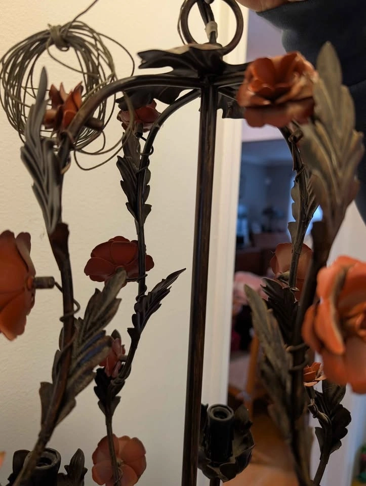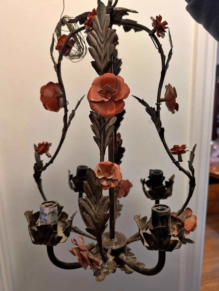 Vintage 1960 Metal Tolle painted Chandelier