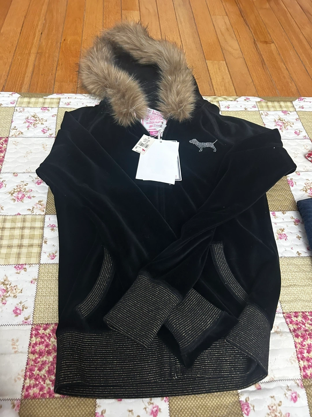 Selling a brand new PINK Victoria's Secret velour jacket! It's a super cozy black jacket with a faux fur hood.