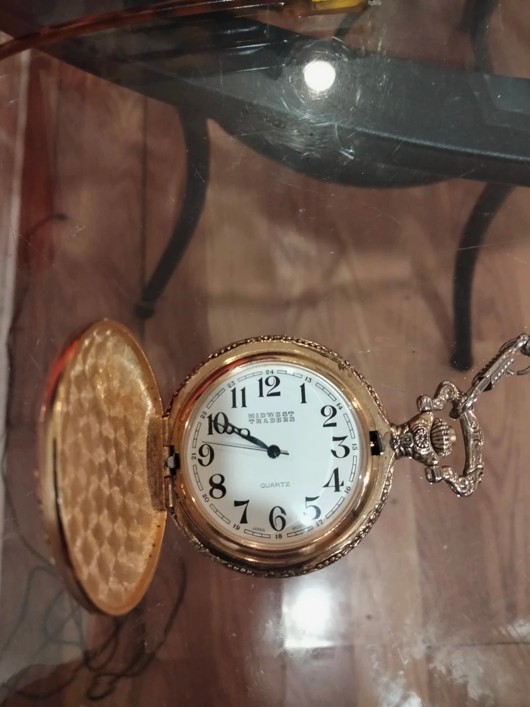This listing includes two pocket watches. One watch is silver-tone with a clean white dial and has 'Quartz' printed on it. The second watch is gold-tone with a white dial and also marked 'Quartz' and 'Japan'. Both watches have chains attached.