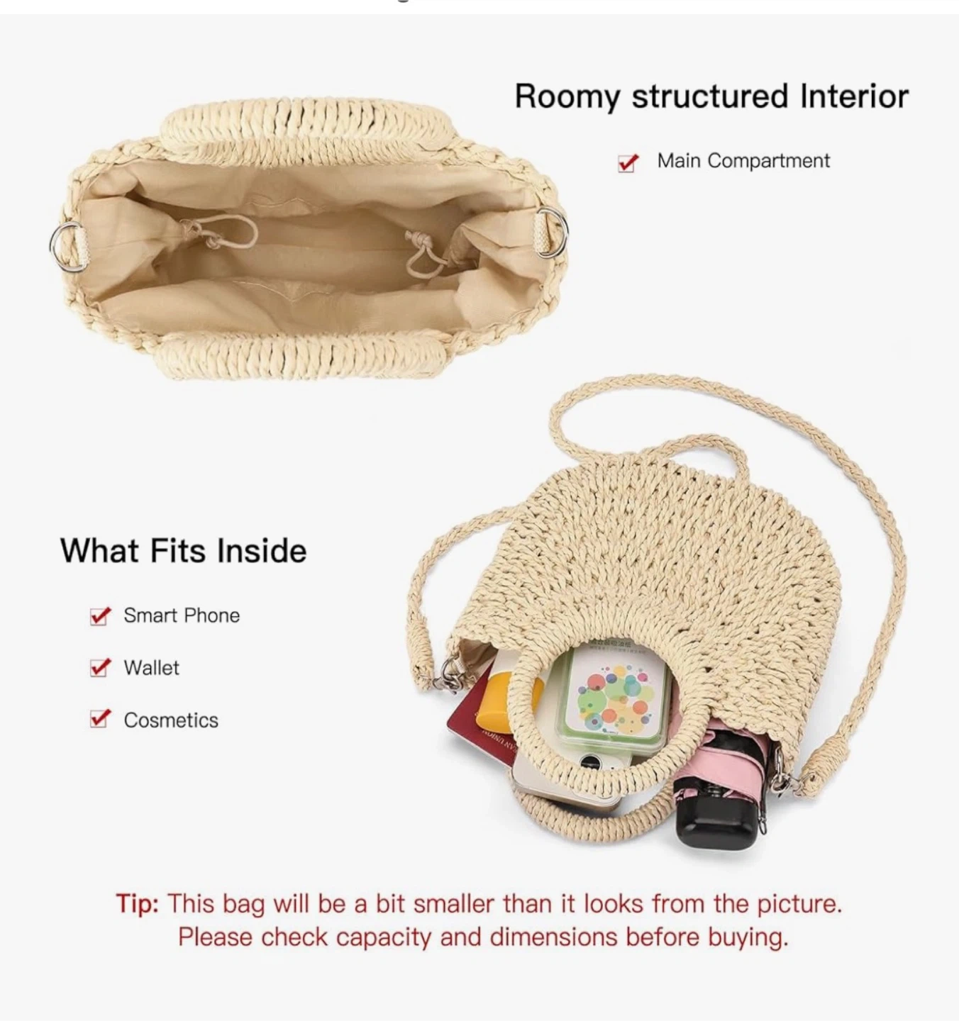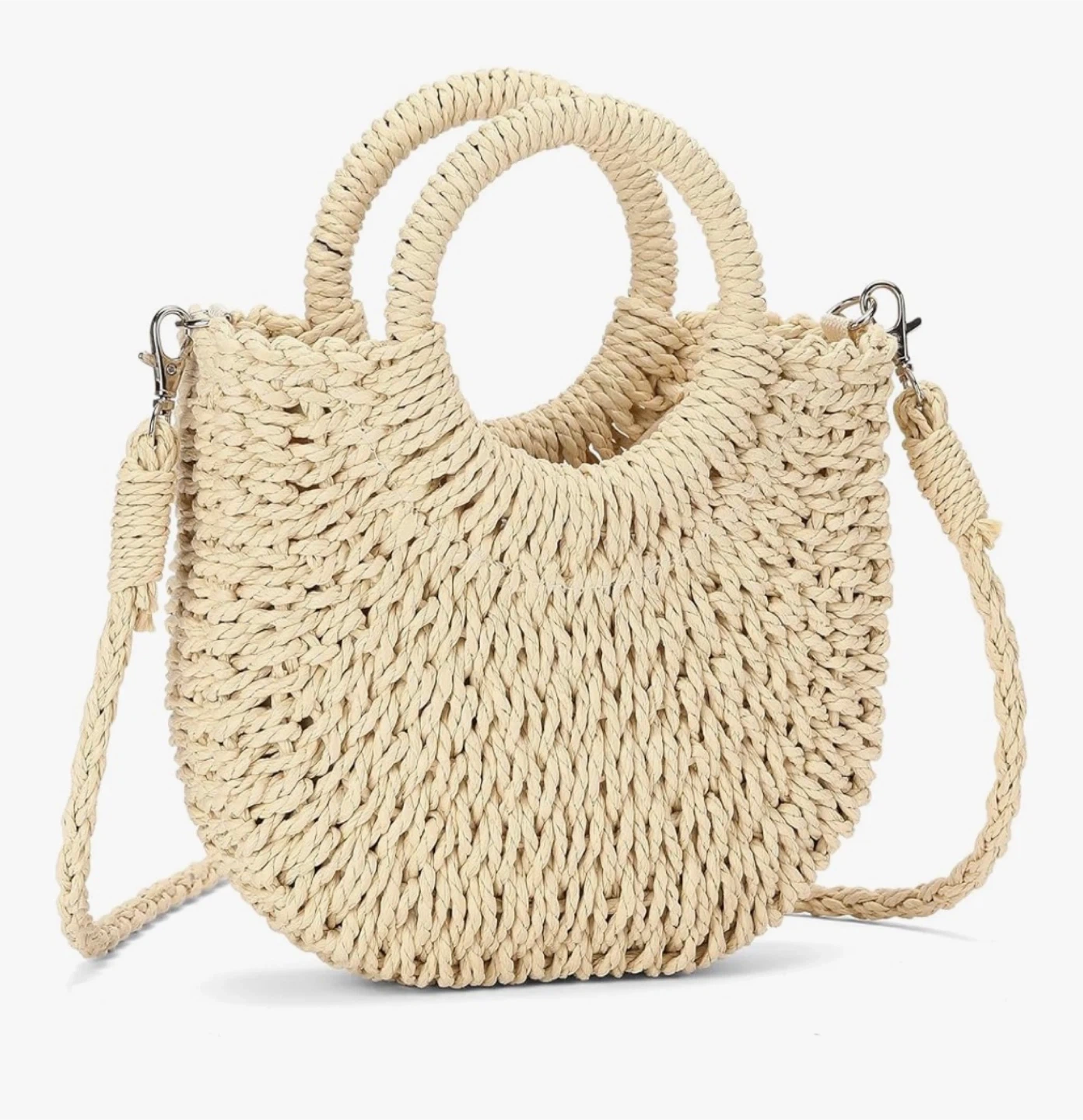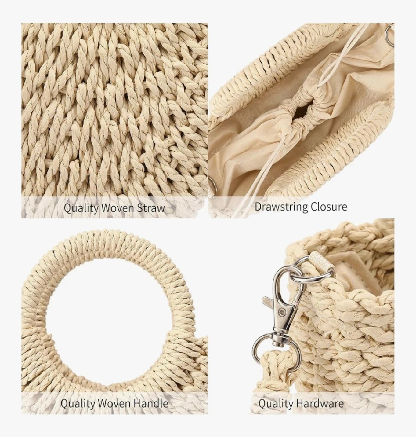 Boho Straw Beach Bag – Woven Crochet Crossbody Top Handle