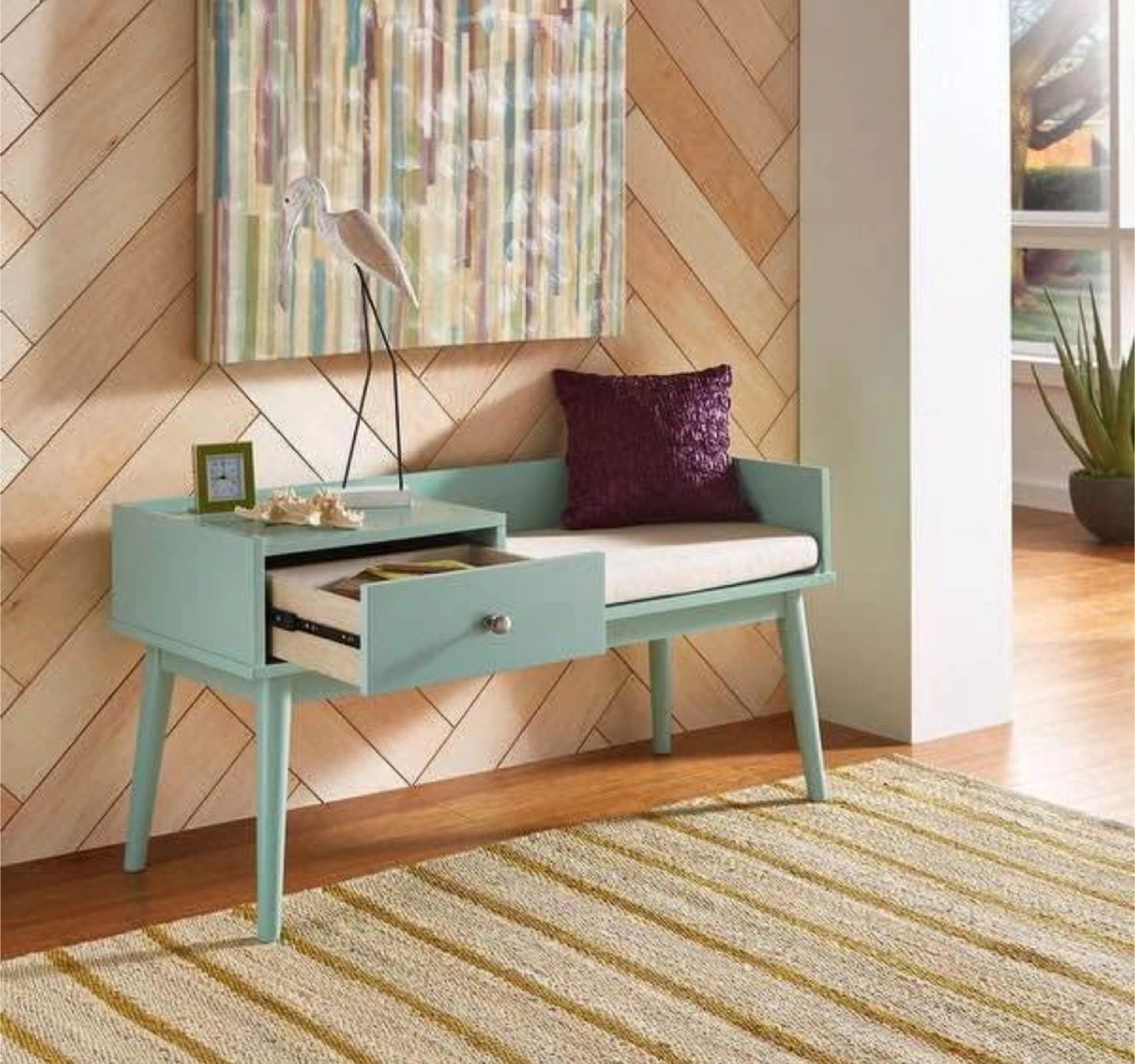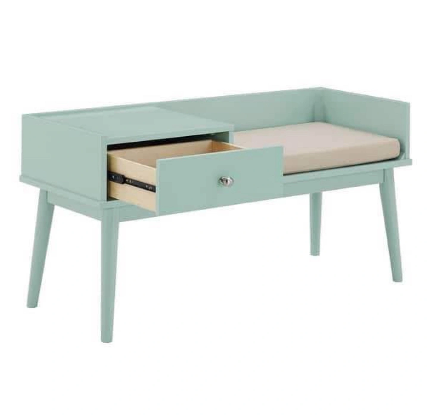 Mid Century Modern Wood 1-Drawer Cushioned Entryway Bench