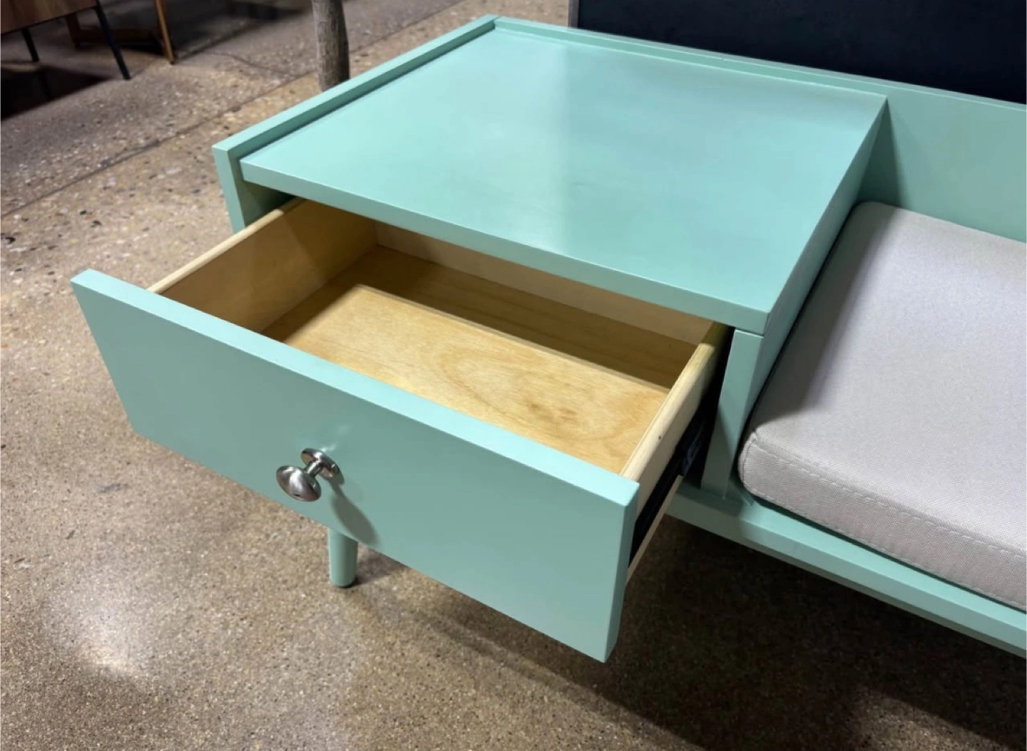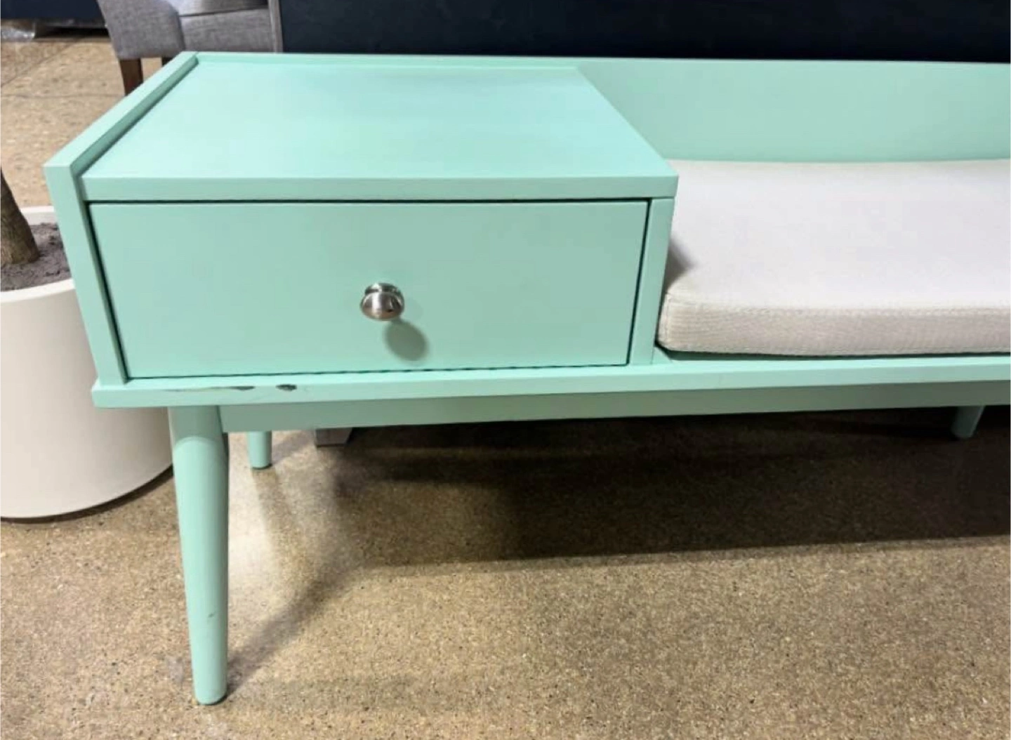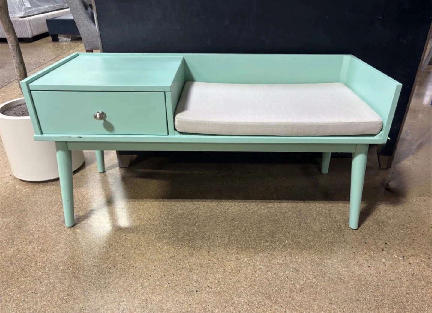 Mid Century Modern Wood 1-Drawer Cushioned Entryway Bench - New Floor Model - See Photos
