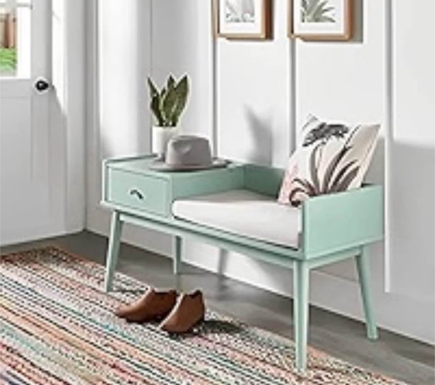 Mid Century Modern Wood 1-Drawer Cushioned Entryway Bench