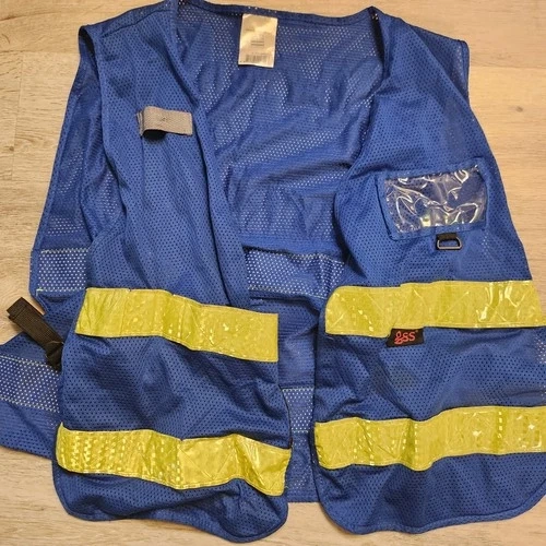 The straps can adjust size. This is a safety vest designed for business and industrial environments. The vest comes in a vibrant Hi-Visibility Yellow color with reflective accents for maximum visibility. In size L, this vest is essential for personal protective equipment to ensure the safety of individuals in the workplace.