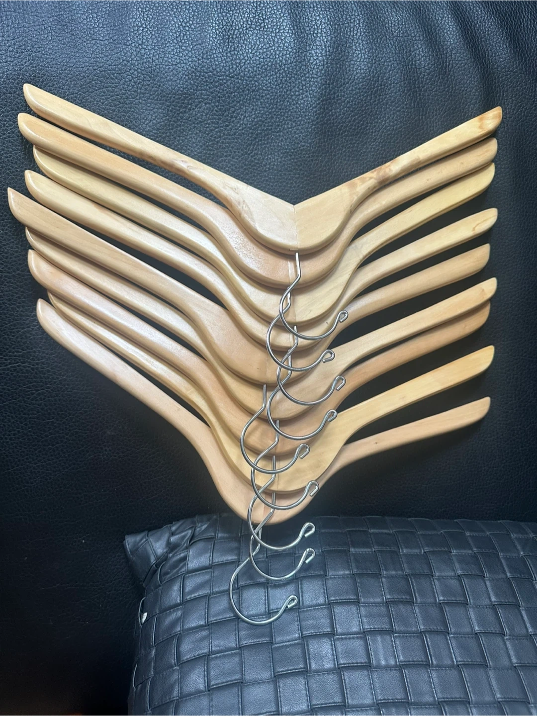 Selling a set of 20 wooden clothes hangers. They're in great shape and ready to keep your closet organized!