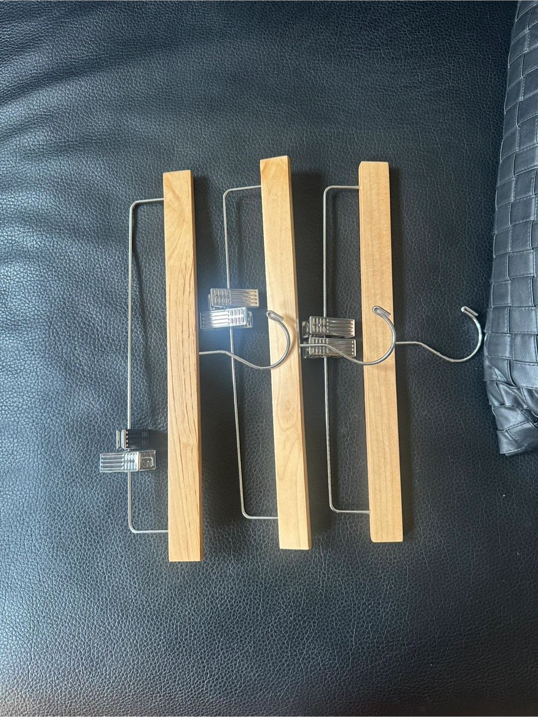 Selling a set of 20 wooden clothes hangers. They're in great shape and ready to keep your closet organized!