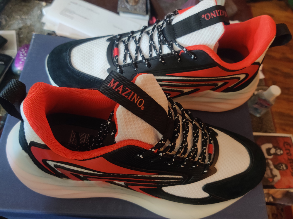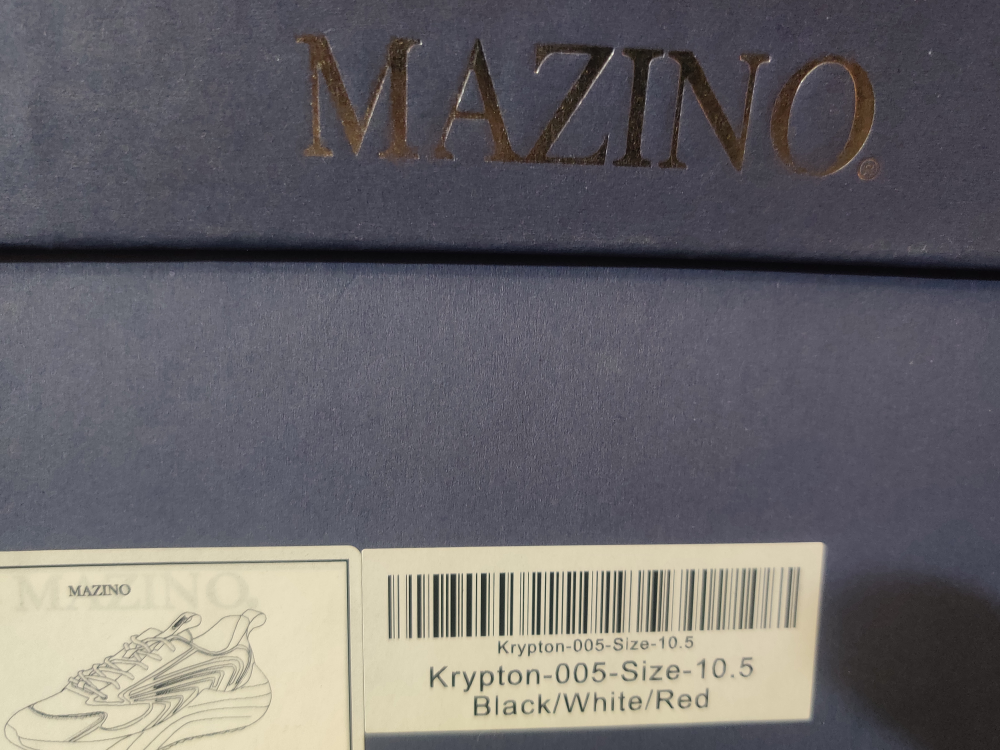 Selling a pair of Mazino Krypton-005 sneakers in size 10.5! The colorway is black, white, and red. They come with the original box