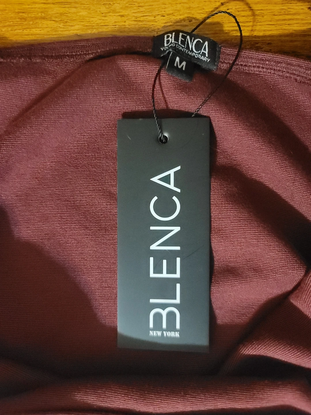 This is a Blenca tube top in burgundy, size medium. The length is approximately 14-15 inches, and the pit to pit measurement is about 15.5 inches. It's in great condition and ready for a new home!