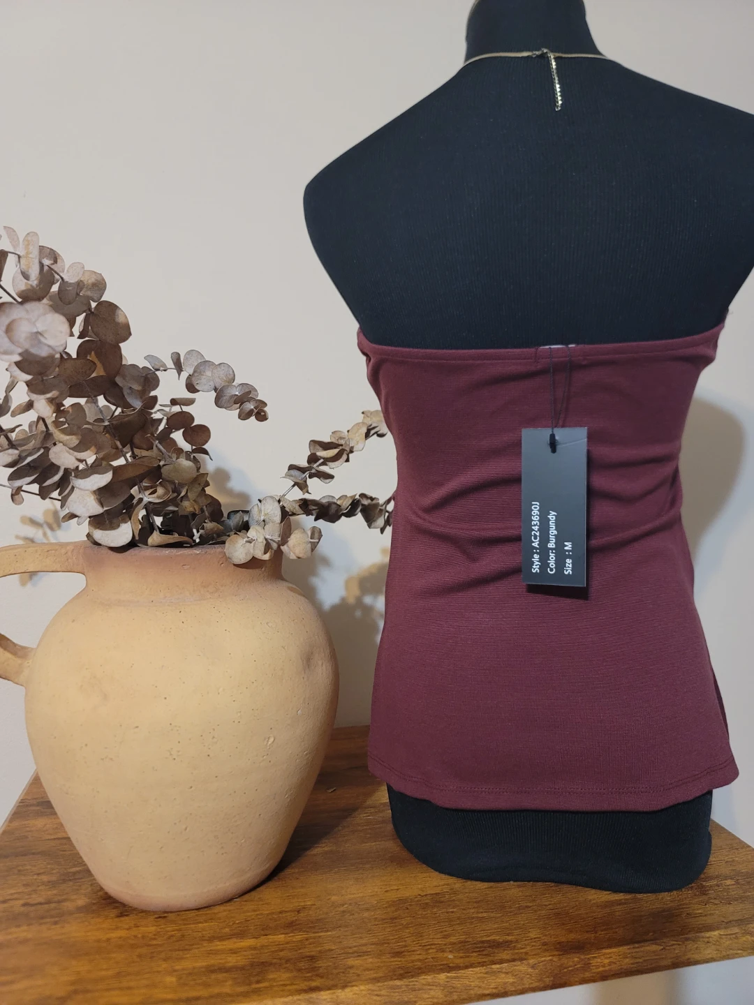 Elevate your style with this chic strapless burgundy camisole. Perfect for any occasion, its rich color adds sophistication to your wardrobe. #tubetop #90s #retro #y2k #street #summer #beach #strapless #casualchic #minimal #layers #nostalgia #edgy #sultry #silhouette #brunch #date #festival #contemporary #versatile #oldmoney #scandiminimal #cleangirl #grunge #resort #travel #vacation #coastal #street #preppymodern #new #slit #nwt #bodycon