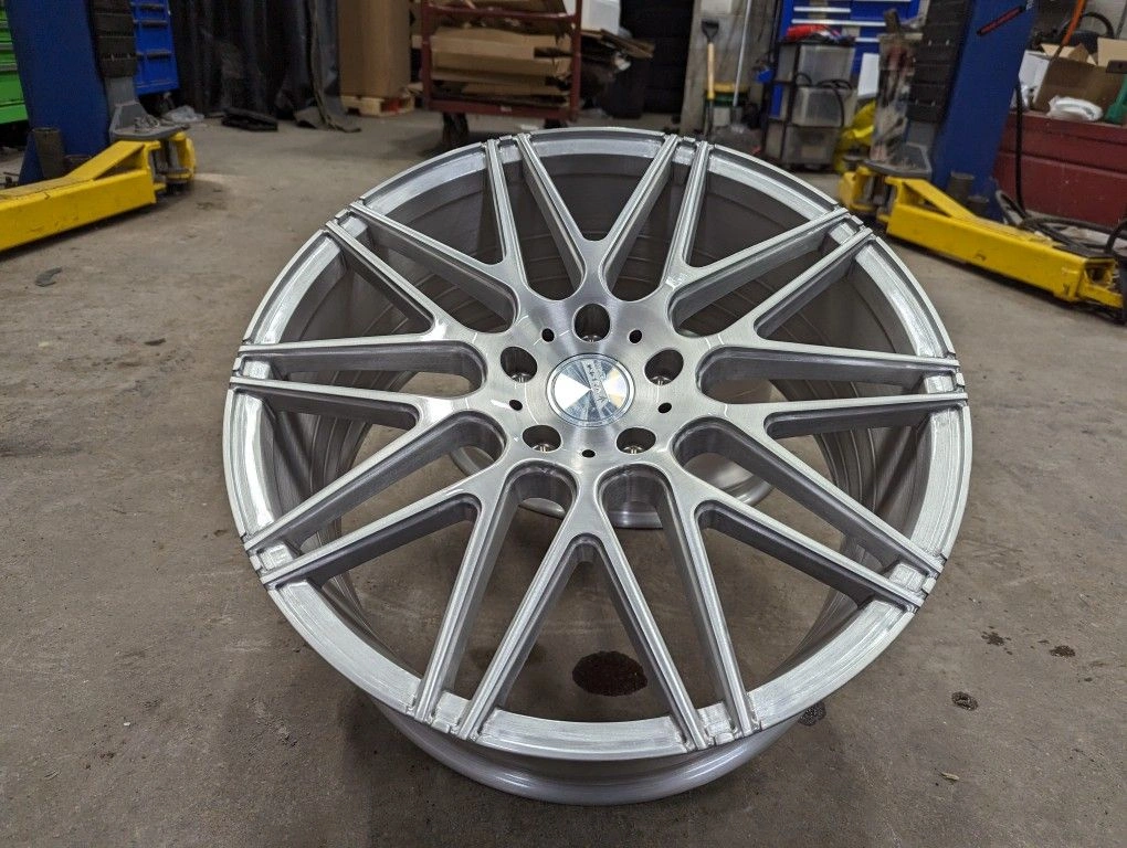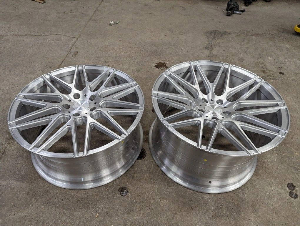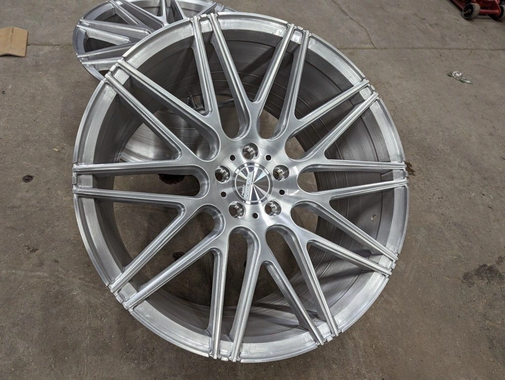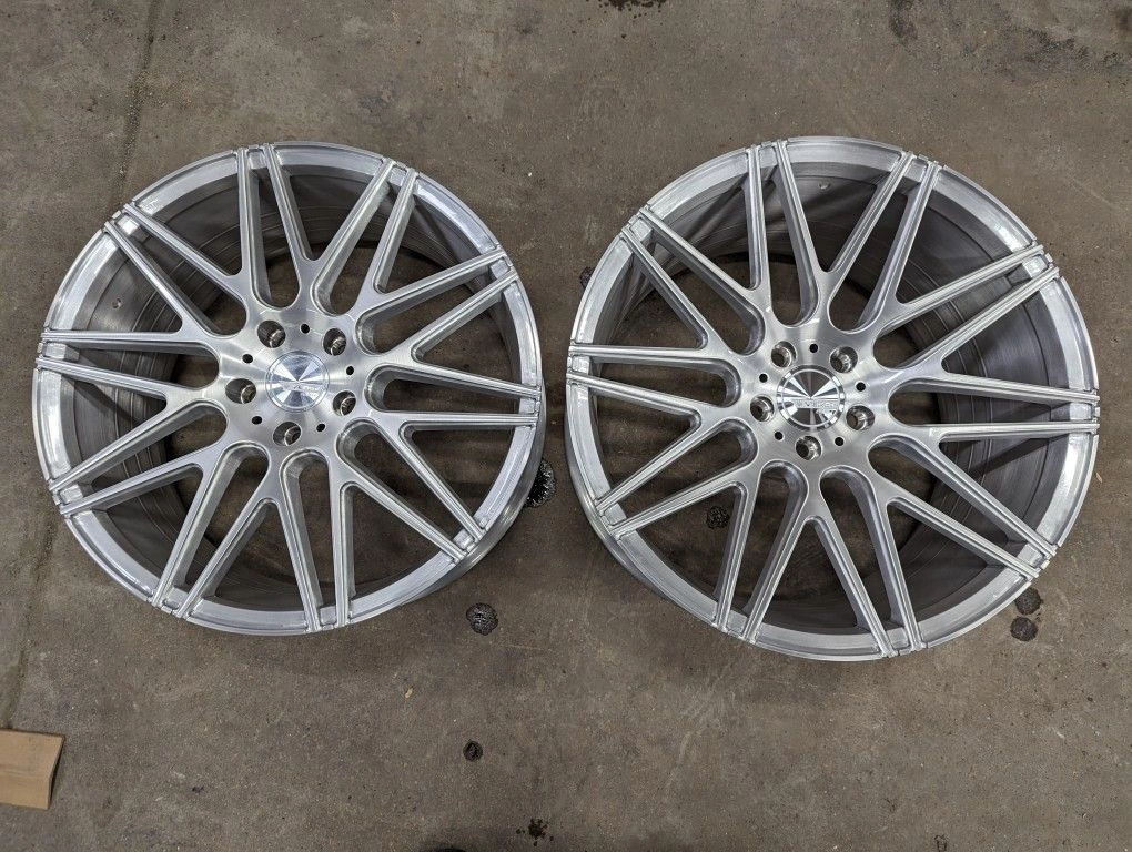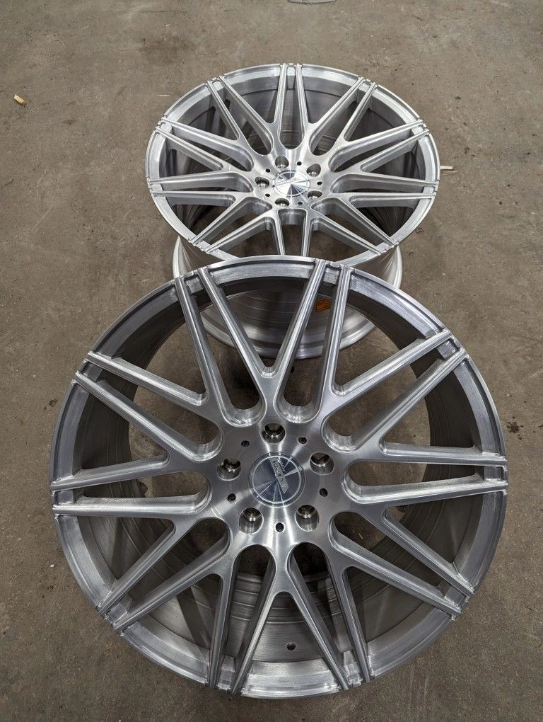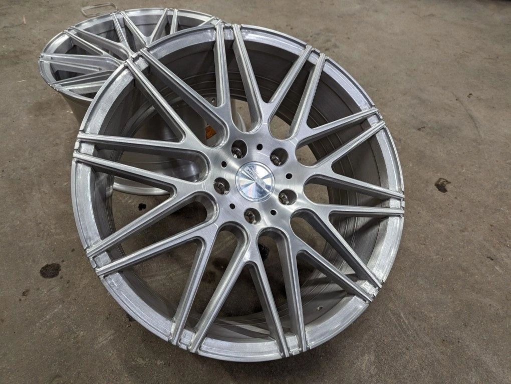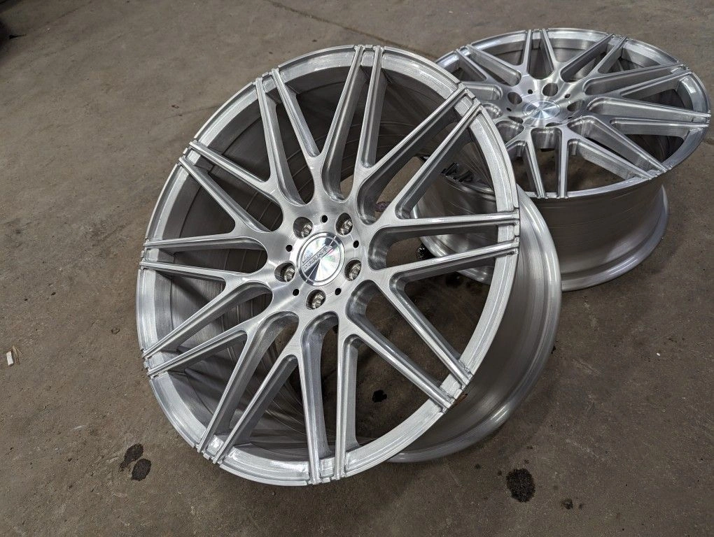 Set of 4 forged VFF01 wheels in Brushed Aluminum. Staggered set with 2 fronts (20x9, 5x4.75 bolt pattern, ET59) and 2 rears (20x11, 5x4.75 bolt pattern, ET52). These are lightweight forged aluminum wheels. Only $1200 for the set. One set left!