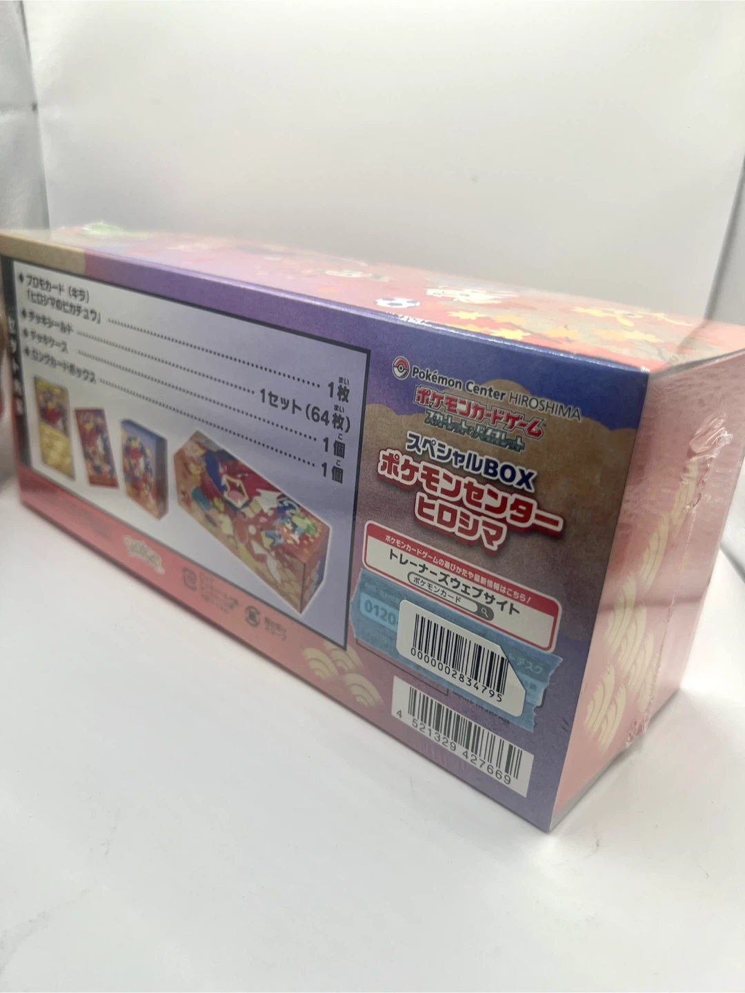 This is a sealed Pokemon Center Hiroshima Special Box from Japan. Just like the famous Poncho, invest in this sealed box now for future gains. It includes the highly sought after promo card, card sleeves, and a deck box. Box is factory sealed and in mint condition.