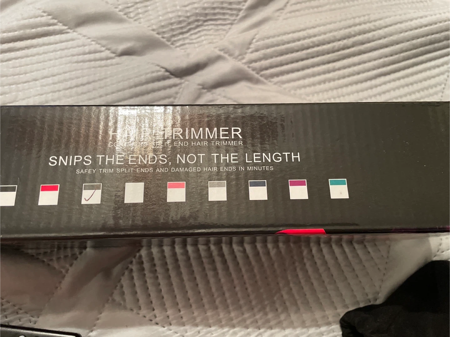 I'm selling a brand new split end hair trimmer! It safely trims split and damaged hair ends in minutes. Snips the ends, not the length! Comes in the original box.